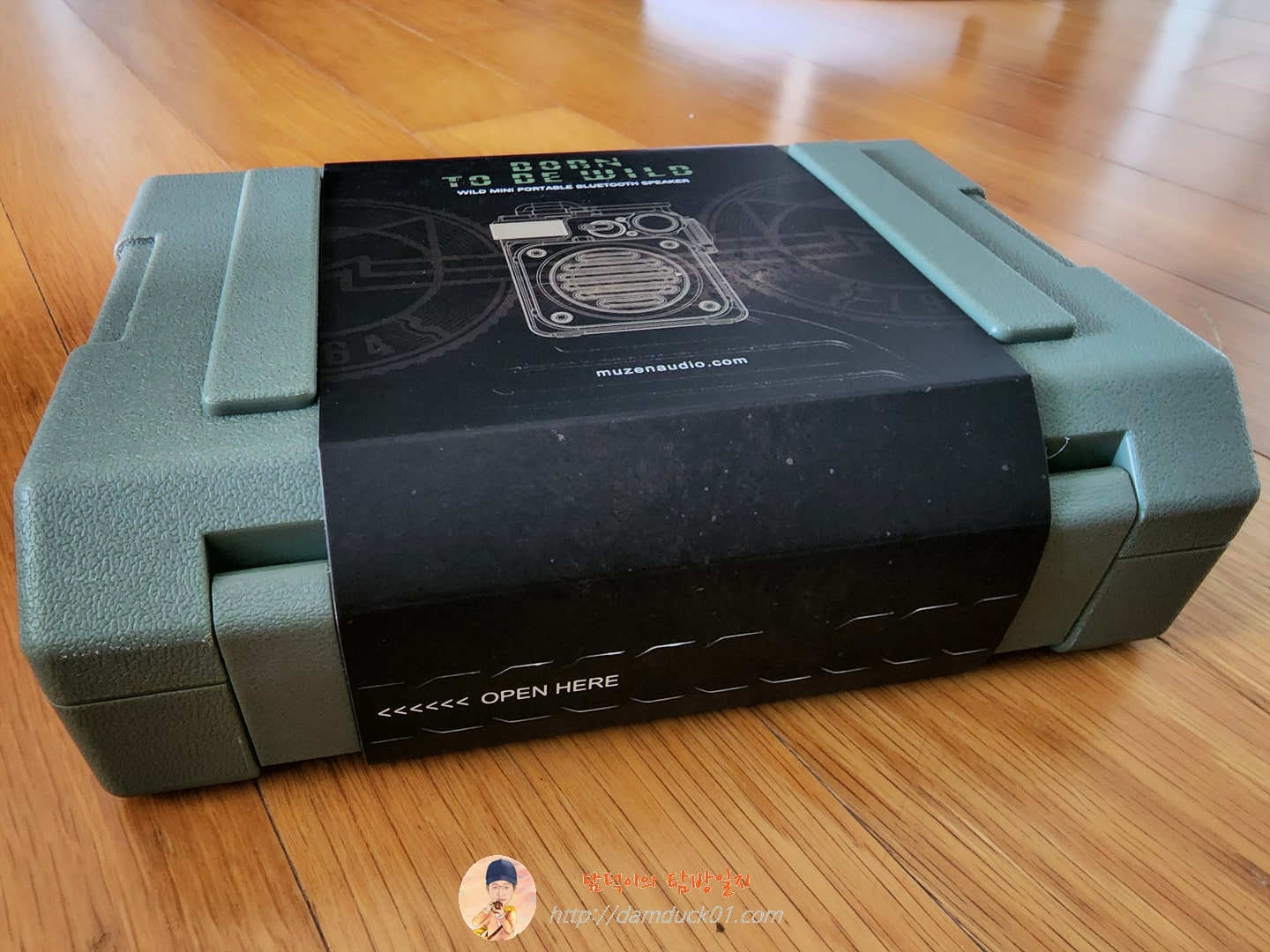 자 그럼 스피커를 봐야죠. 케이스를 감싼 종이를 제거하면 이렇게 MUZEN이 적혀 있고 저기 보이는 고정틀을 열면 되겠죠.