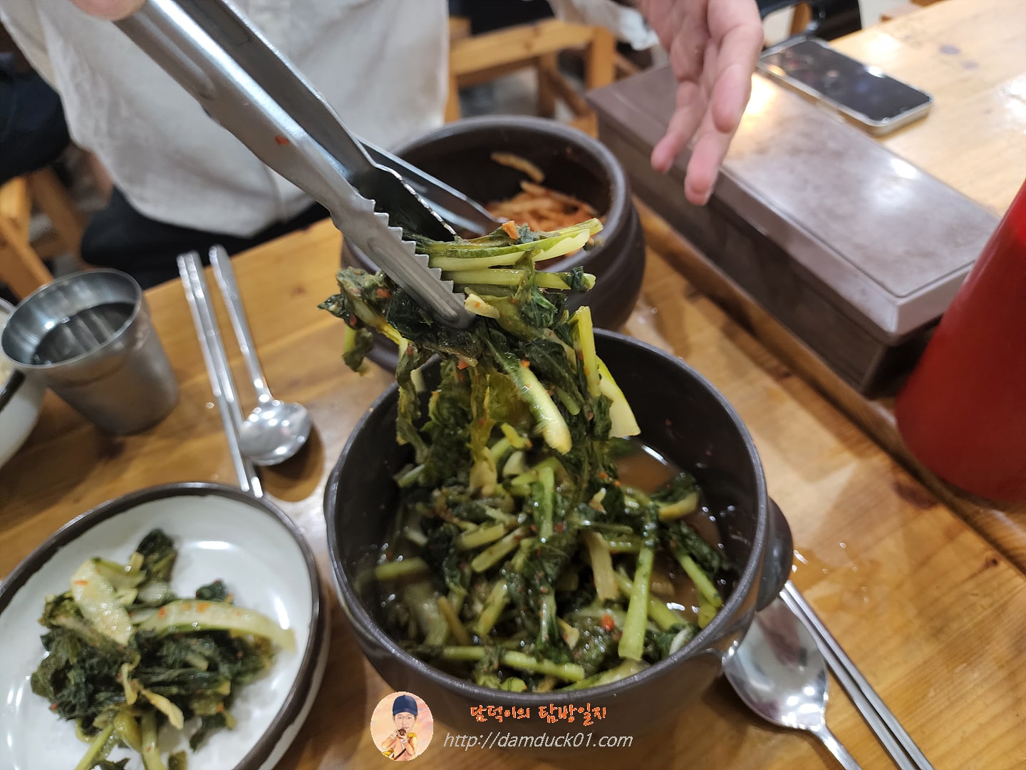 자리에 앉아서 가장 먼저 준비할 건 바로 반찬 덜기죠. 두 가지 반찬 중 저는 열무김치만 챙겨봅니다. 열무 보리비빔밥 먹을 거라서요.