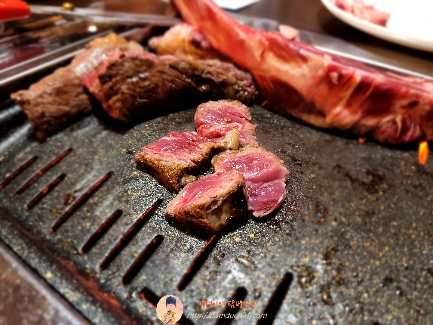 이렇게 토마호크의 부위별로 레어, 미디엄, 웰던 각자 취향에 맞게 구워서 한 점씩, 두 점씩 먹고 나면
