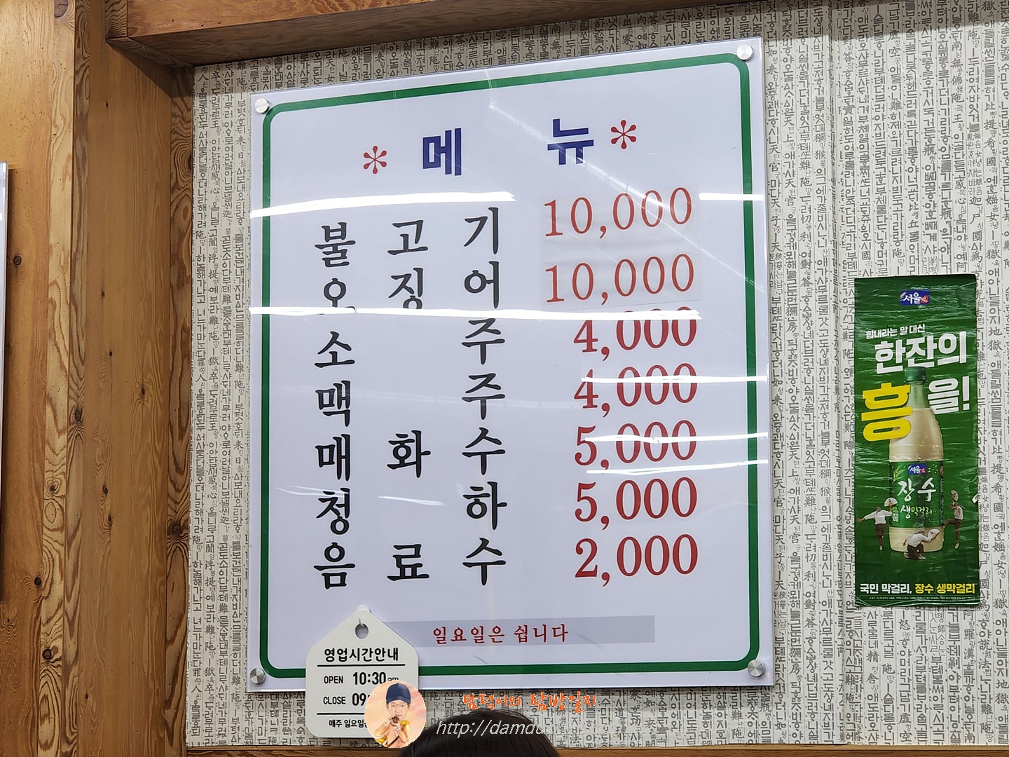 메뉴는 불고기와 오징어 단 두 가지뿐, 이제 겨우 두 번째 방문이지만 하나만 시켜 먹는 손님은 보지 못했습니다. 제가 봤을 때 청진식당에서는 무조건 두 개 시켜서 섞어 먹어야 합니다.