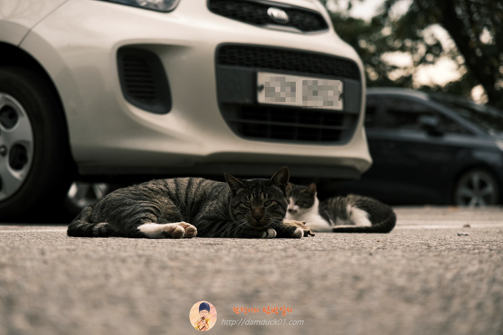 이때 날씨가 제법 서늘했는데 주차장에 있는 차 주변이 따뜻해서 그런지 고양이들이 몰려 있어요.