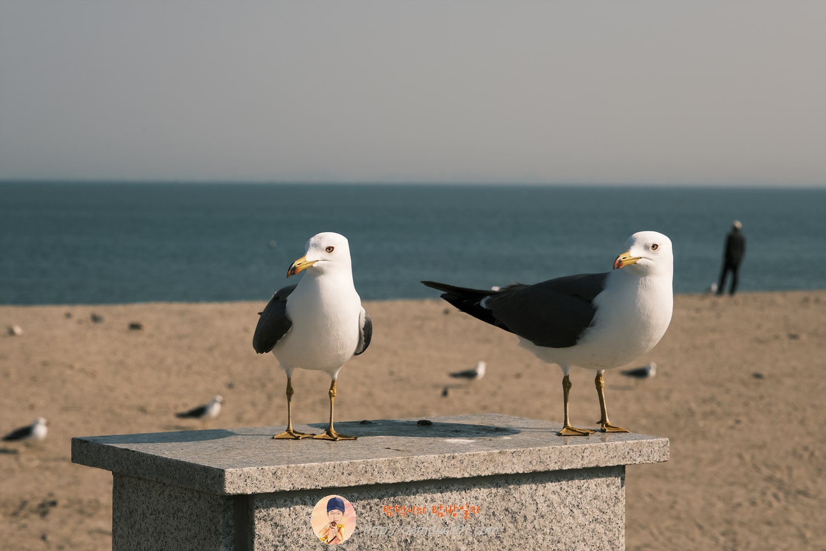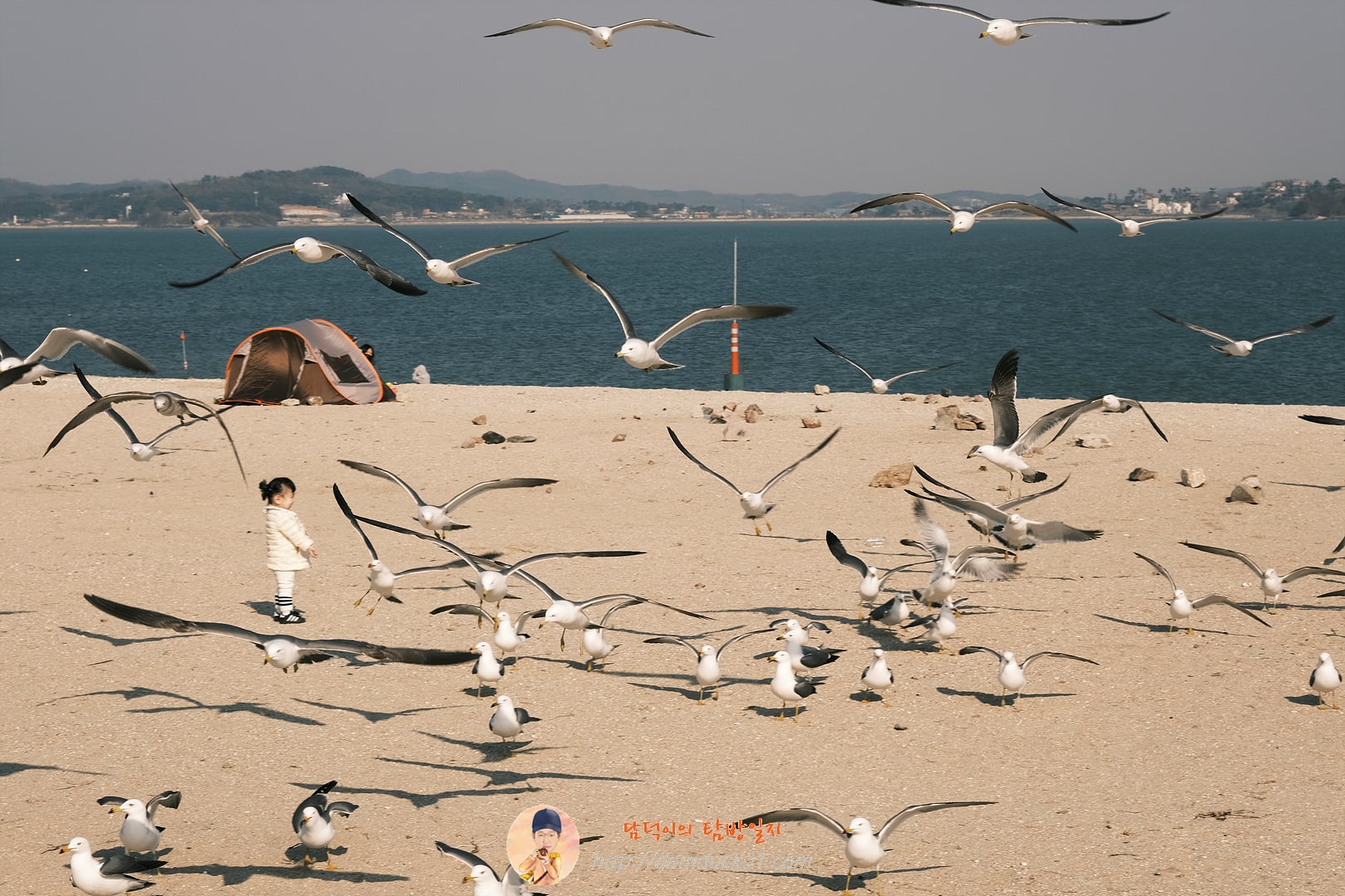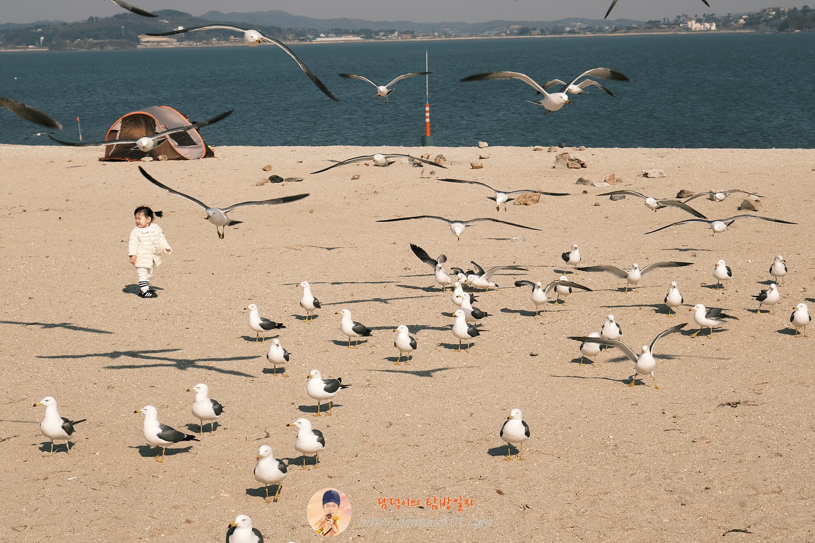 이제 막 걷기 시작한 듯한 여자 아이가 갈매기를 전혀 무서워하지 않는 모습이 너무 이뻐서 담아봤습니다.