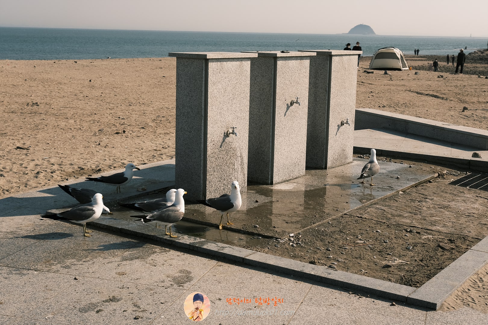 수돗가는 사람이 아닌 갈매기들이 점령을 하고 있네요.