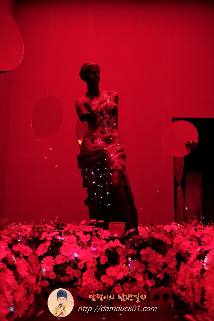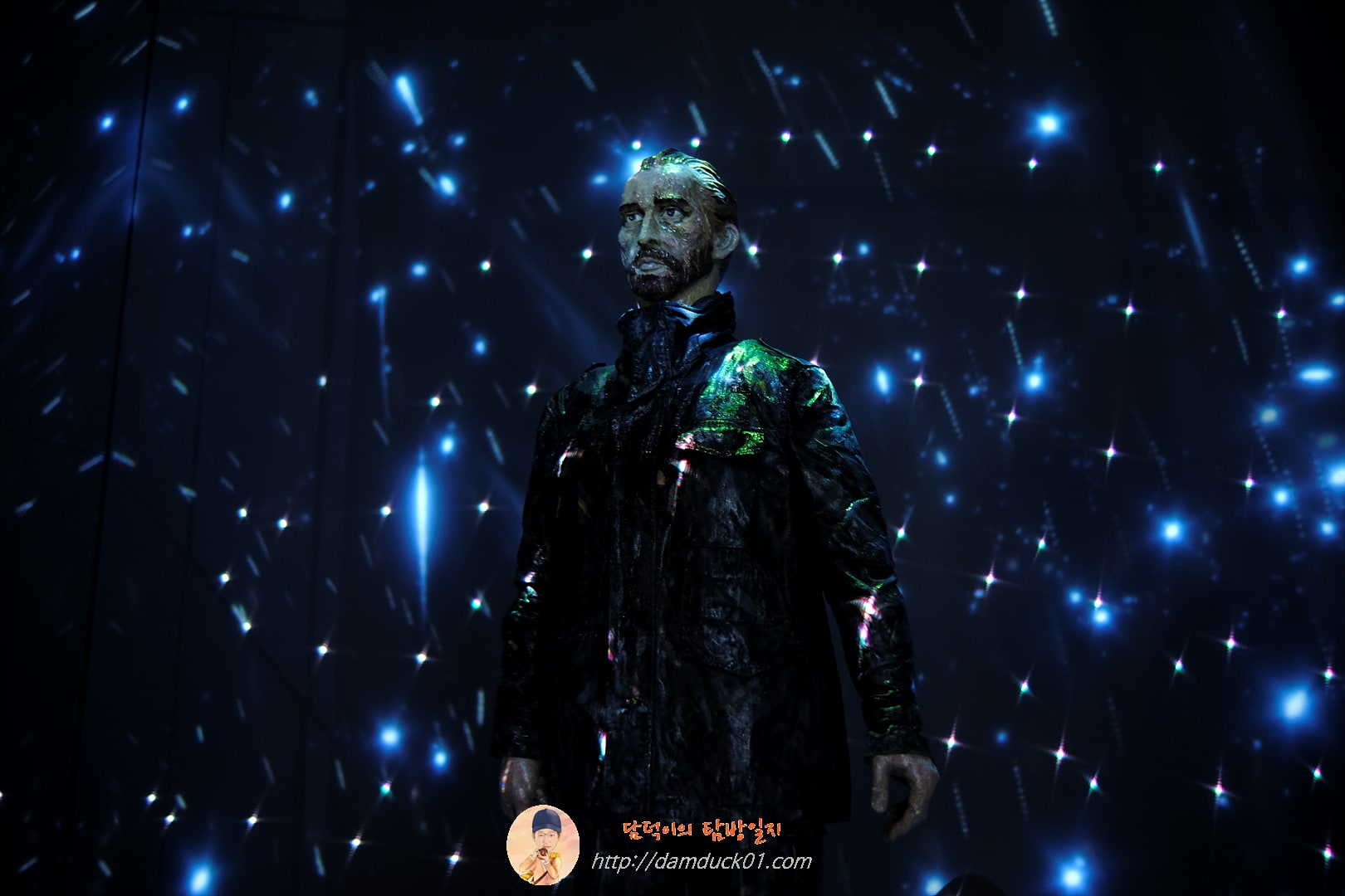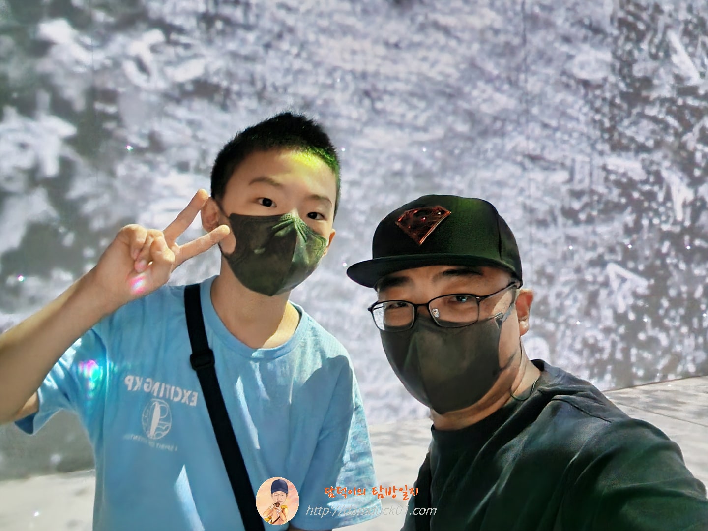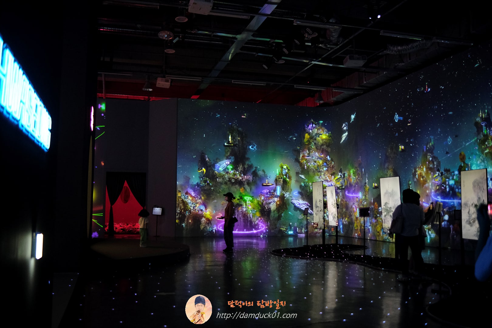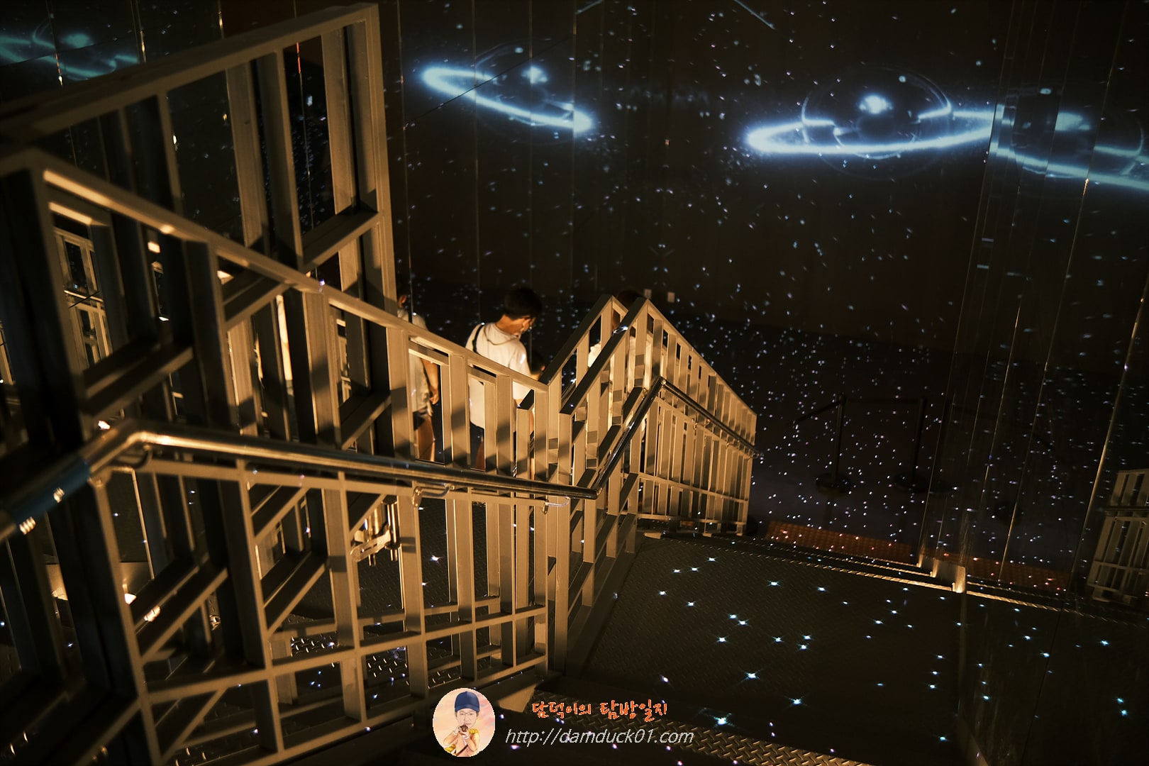 입구에서 안내를 받고 입장함과 동시에 어둠 속 화려한 조명으로 꾸며 놓은 우주를 느껴 보려고 애를 써 봅니다.