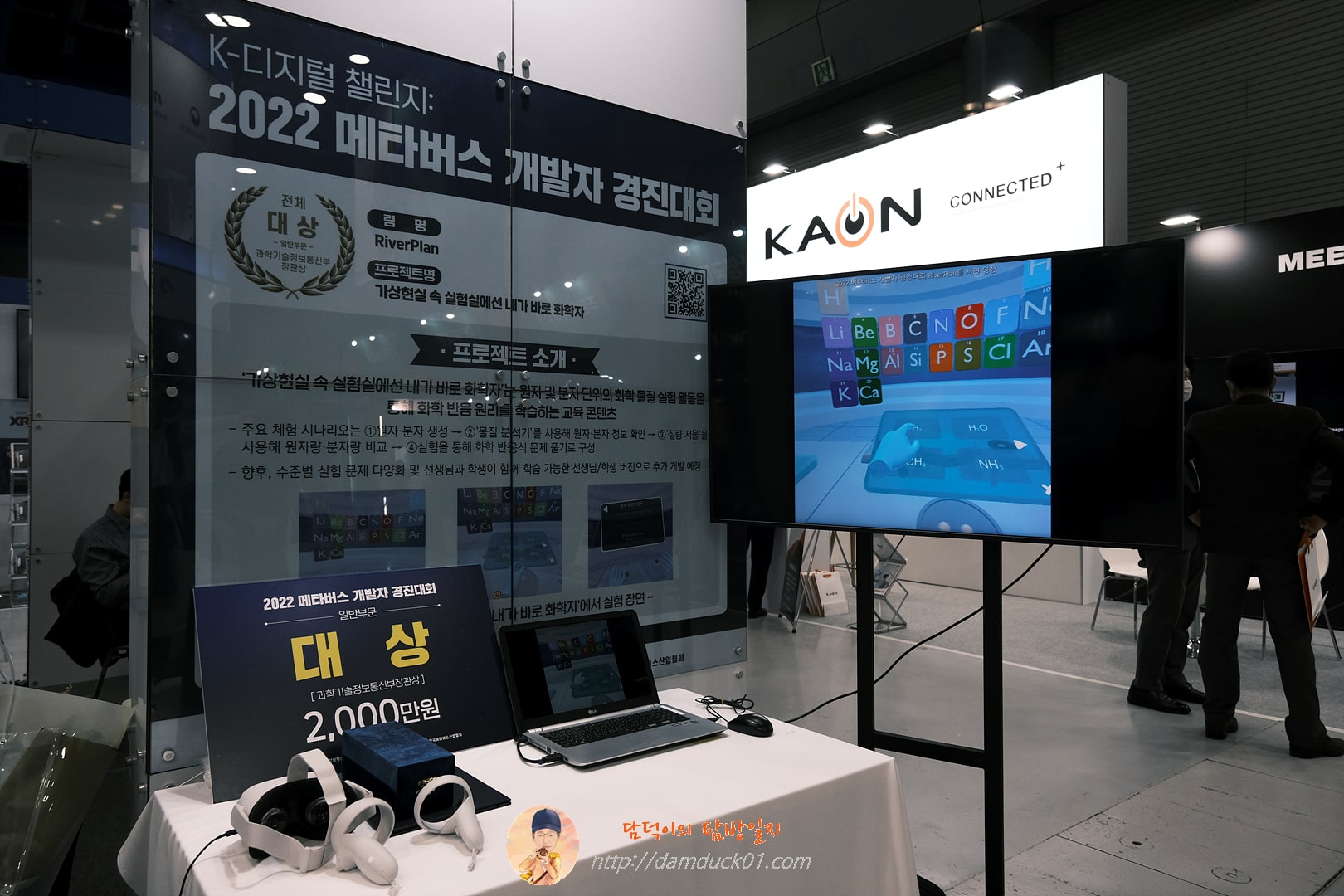 그리고 메타버스 개발자 경진대회가 있었던 거 같은데 이 대회에서 대상을 받은 프로그램도 구경할 수 있었는데 가상현실 속 실험실에서 원자·분자를 생성하고 확인하고 실험을 통해 화학반응식 문제 풀기까지 할 수 있는 프로그램이었어요. 저도 대학 졸업 때 화학 계산식을 시뮬레이션해서 차트로 표현하는 프로그램을 만든 적이 있었는데 확실히 비주얼적으로 화려해지긴 했네요. 조금 더 고도화해서 실제 교육현장에서 활용이 될 수 있다면 좋겠죠? 😁