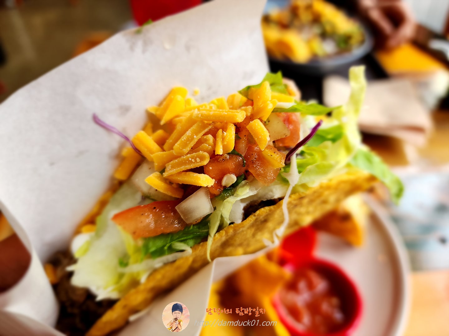 위에서 이야기했듯이 나초의 식감을 좋아하지 않는 저는 하드 타코의 저 튀긴 토르티야. 저게 그냥 큰 나초 같던데요. 먹을 때마다 감싸고 있는 튀긴 토르티야가 따로 부서지면서 소프트 타코처럼 잡아주질 못하니까 먹기가 불편했어요. 하지만 나초를 좋아하는 분들은 하드 타코도 좋아하실 거 같긴 합니다.