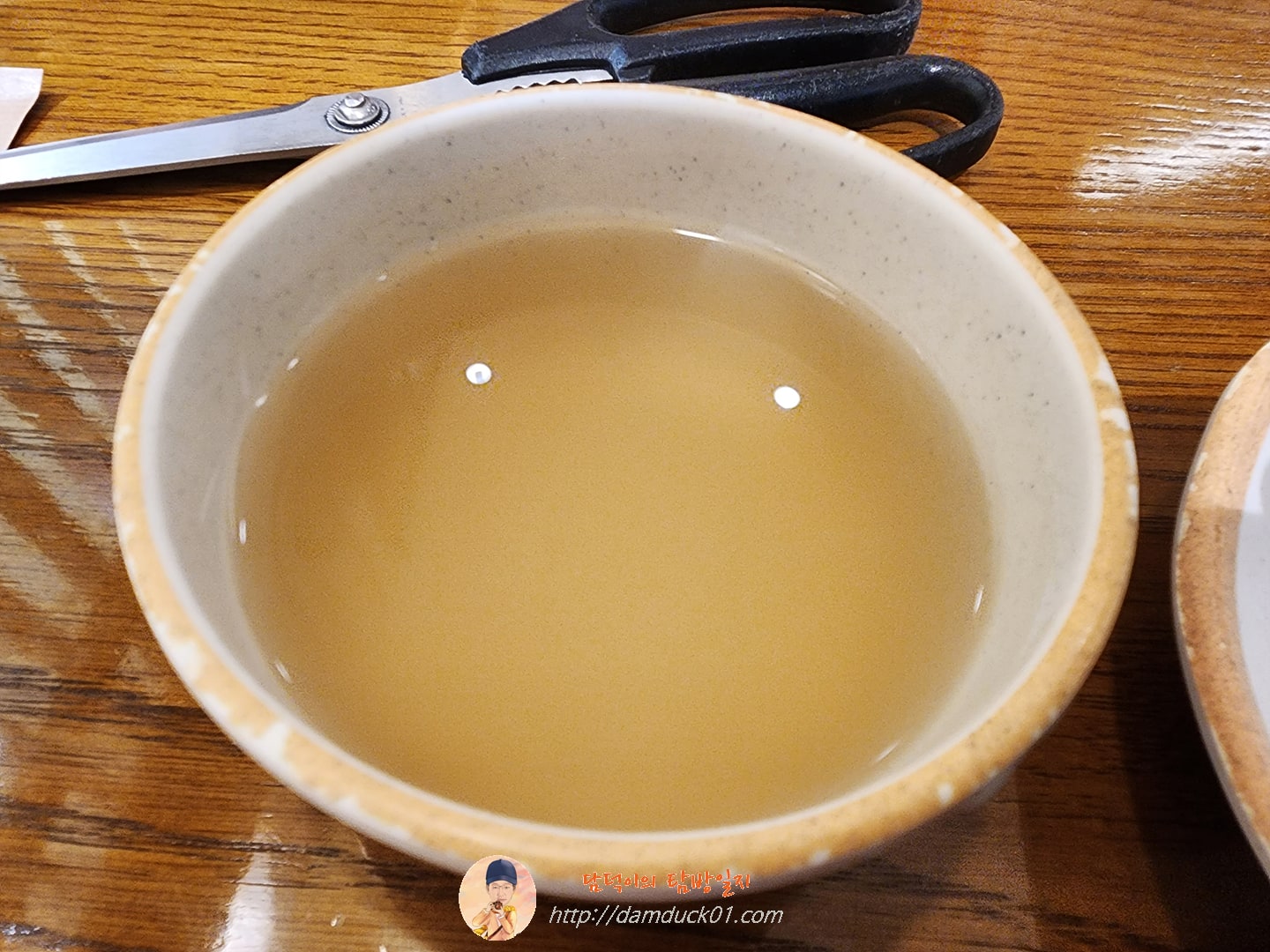 왕만두를 주문해서 나오는 간장이랑 냉면 무 그리고 육수만 나옵니다.