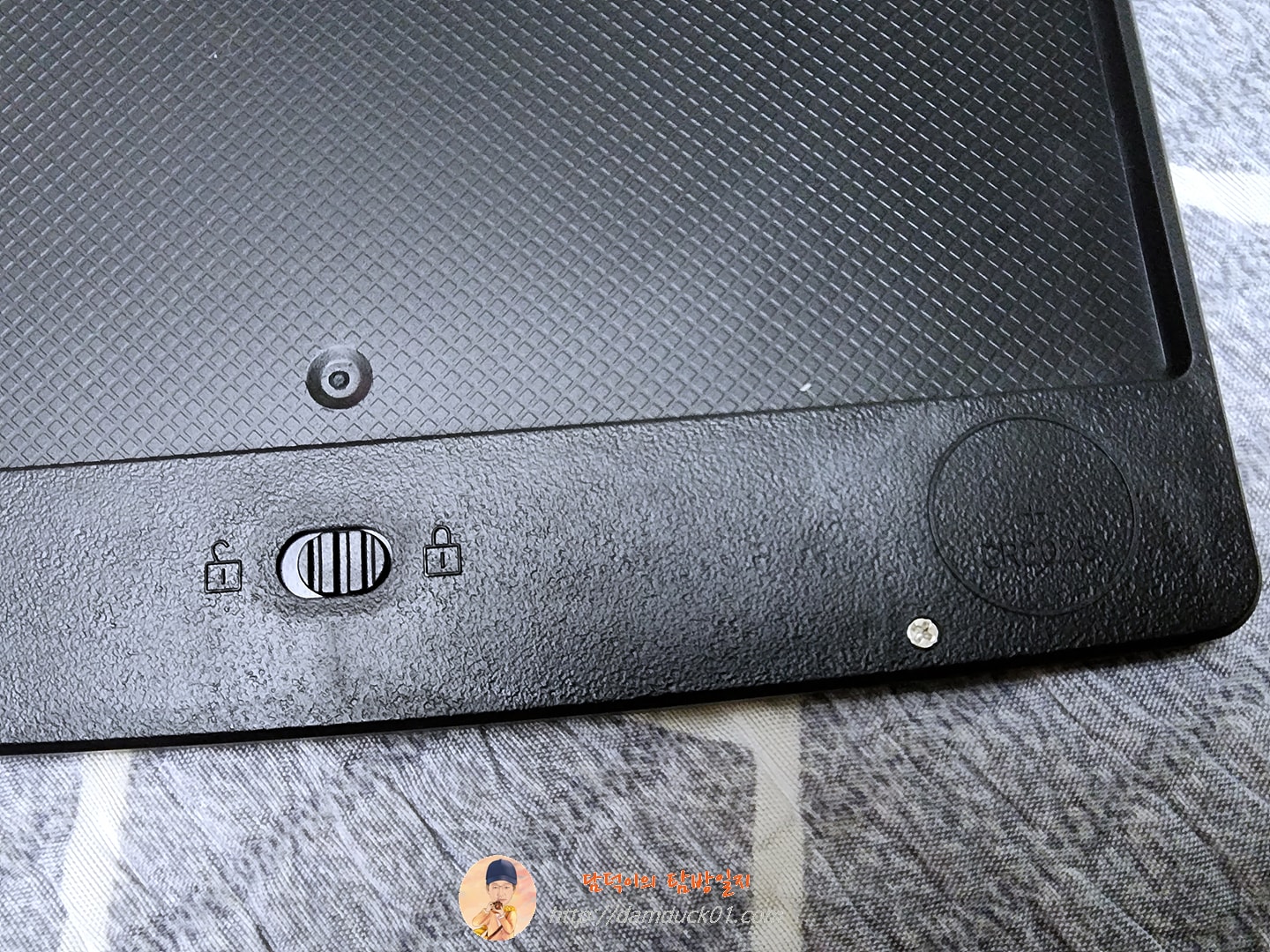 제품의 디자인이 살짝 다른 것도 같지만 전체적인 느낌이나 구성은 동일하네요. LCD 전자 메모보드 상단에 스타일러스 펜 수납이 가능한 구조로 되어 있는 점. 하단에 지우기 버튼이 있는 것과 뒷면에 지우기 버튼을 잠글 수 있는 스위치가 있는 점 그리고 수은 전지가 들어가는 구조까지 디테일에 차이가 있을 뿐 비슷한 구성으로 만들어져 있습니다. 아 그리고 이 제품도 사용되는 수은 전지의 타입은 CR2025로 동일해요.