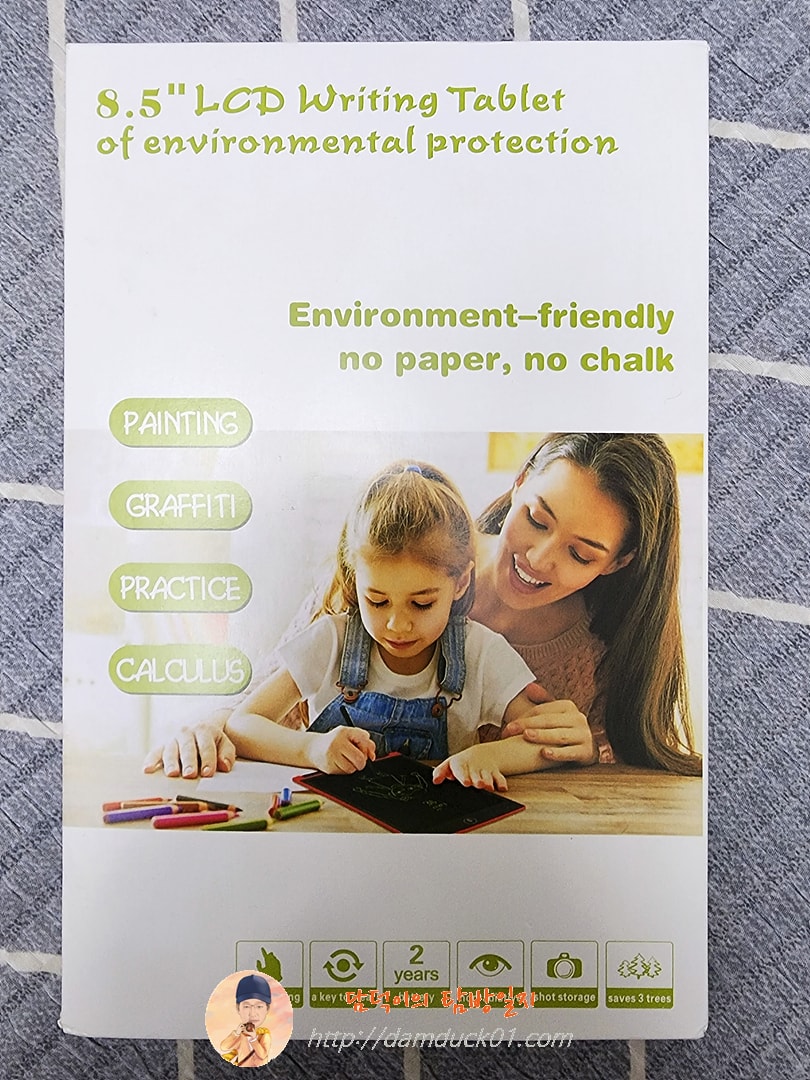 그럼 처음 받아본 LCD 전자 메모보드만 알아볼게요. 이 제품은 화면이 조금 작아요. 8.5인치의 화면을 가지고 있고요 다른 기능들은 다 똑같습니다. 기능이라고 표현하지만 쓰고 전체 지우는 게 전부죠.