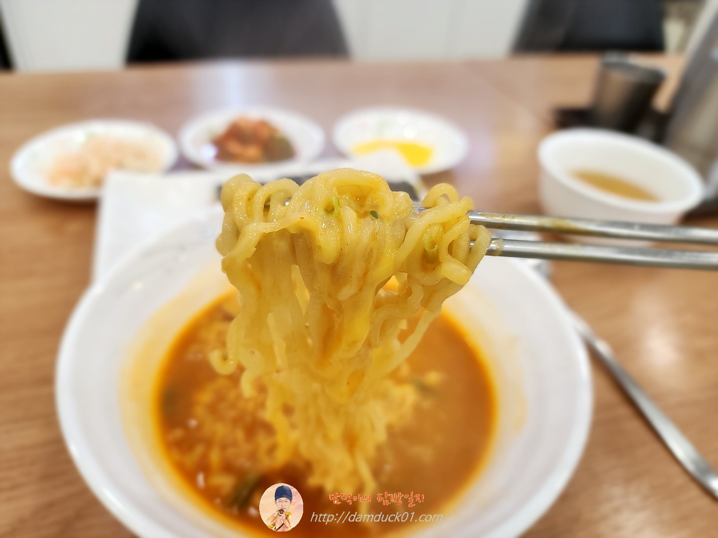 추가된 조리는 없어 보이는 담백하게 끓여 나온 라면입니다.