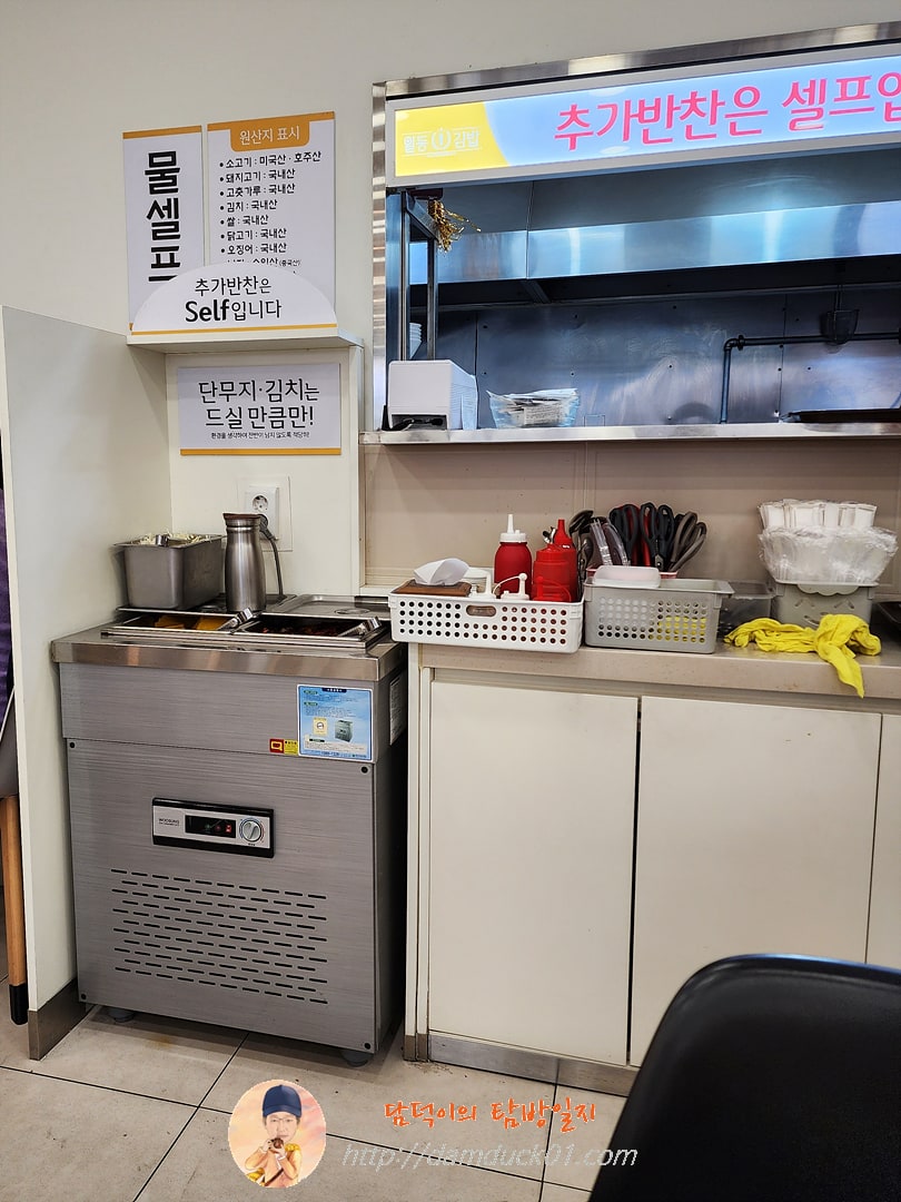 일등김밥에서도 처음에는 준비해주지만 추가 반찬은 셀프라고 하네요.