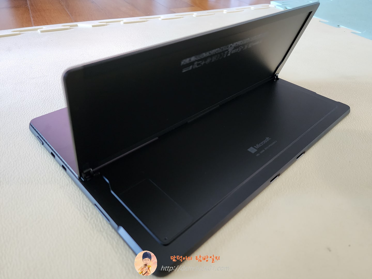 서피스 시리즈의 기술적 장점 중 하나라고 하는 킥스탠드를 펼칠 때 편의성을 제공하기 위해 위와 같이 홈이 있어서 보다 쉽게 펼칠 수 있도록 되어 있는데 이게 킥스탠드의 기분 좋은 빡빡함 때문에 홈을 이용해서도 쉽게 펼쳐지지는 않더라고요.
