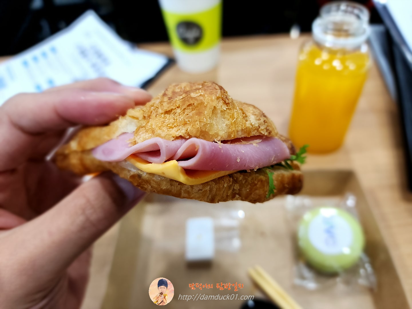 거기에 오렌지 주스까지 깔끔한 구성입니다.