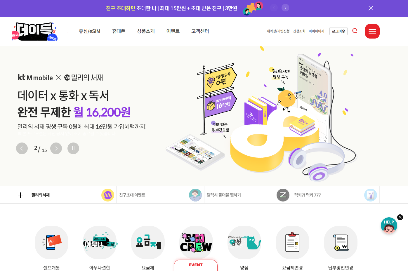 kt M mobile 요금제 바꾸고 밀리의 서재 무료로 사용하고 있어요.