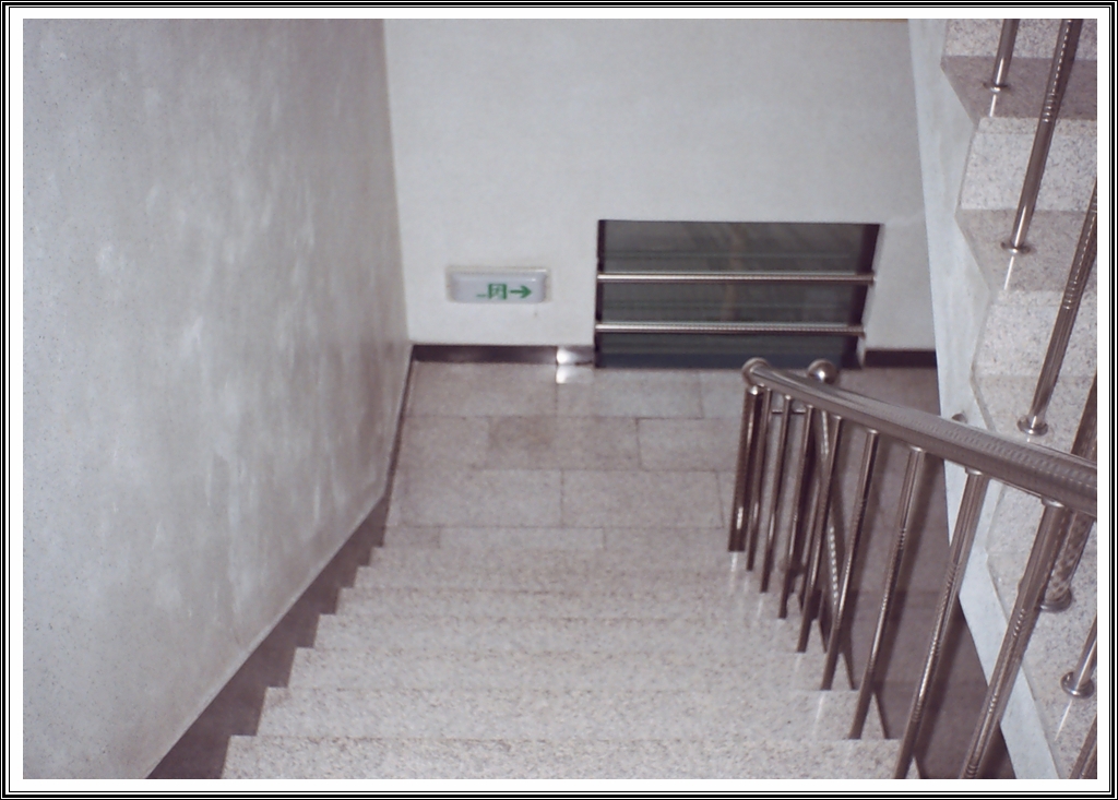 옥상에서 내려오는 계단을 찍어 봤습니다. 초점이 잘 안 맞은 거 같아요. 😭