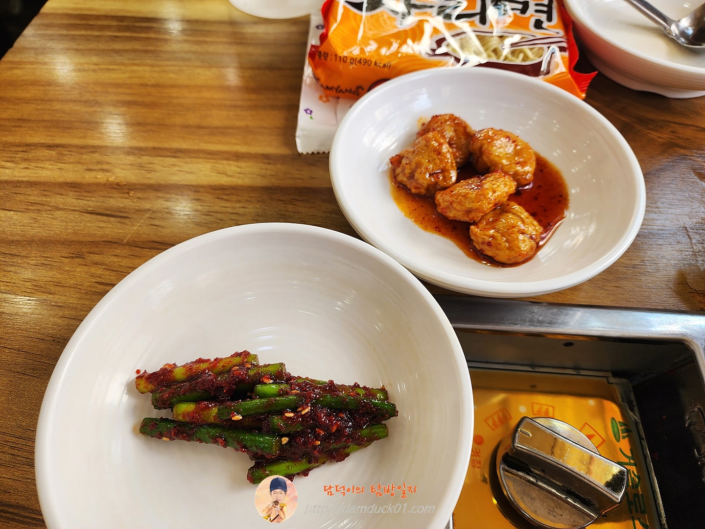 양념을 풀어주고 바글바글 끓는 동안 반찬을 하나씩 집어 먹다 보니 어느새 빈 반찬 그릇을 홀에서 일하시는 분이 알아서 챙겨주시네요. 이런 서비스는 아주 만족스럽습니다.