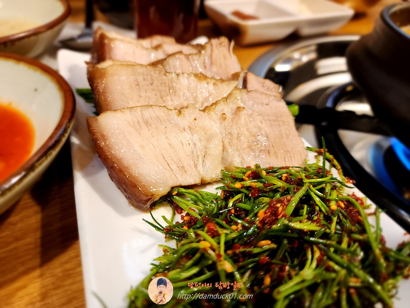 수육은 부추와 세발나물 무침으로 담백함과 상큼함을 더했고 제육볶음도 맛있게 잘 나왔죠?