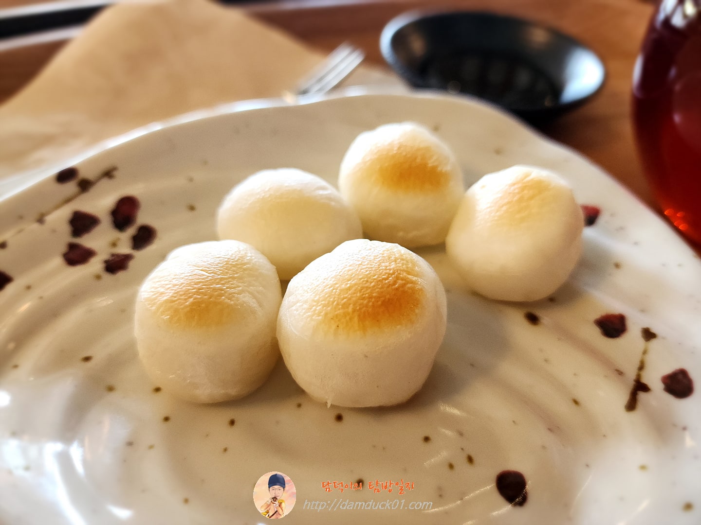 음료를 주문하면 웰컴티와 가래떡구이까지 먹을 수 있는 카페·인사에서 오미자차 마시고 왔어요.