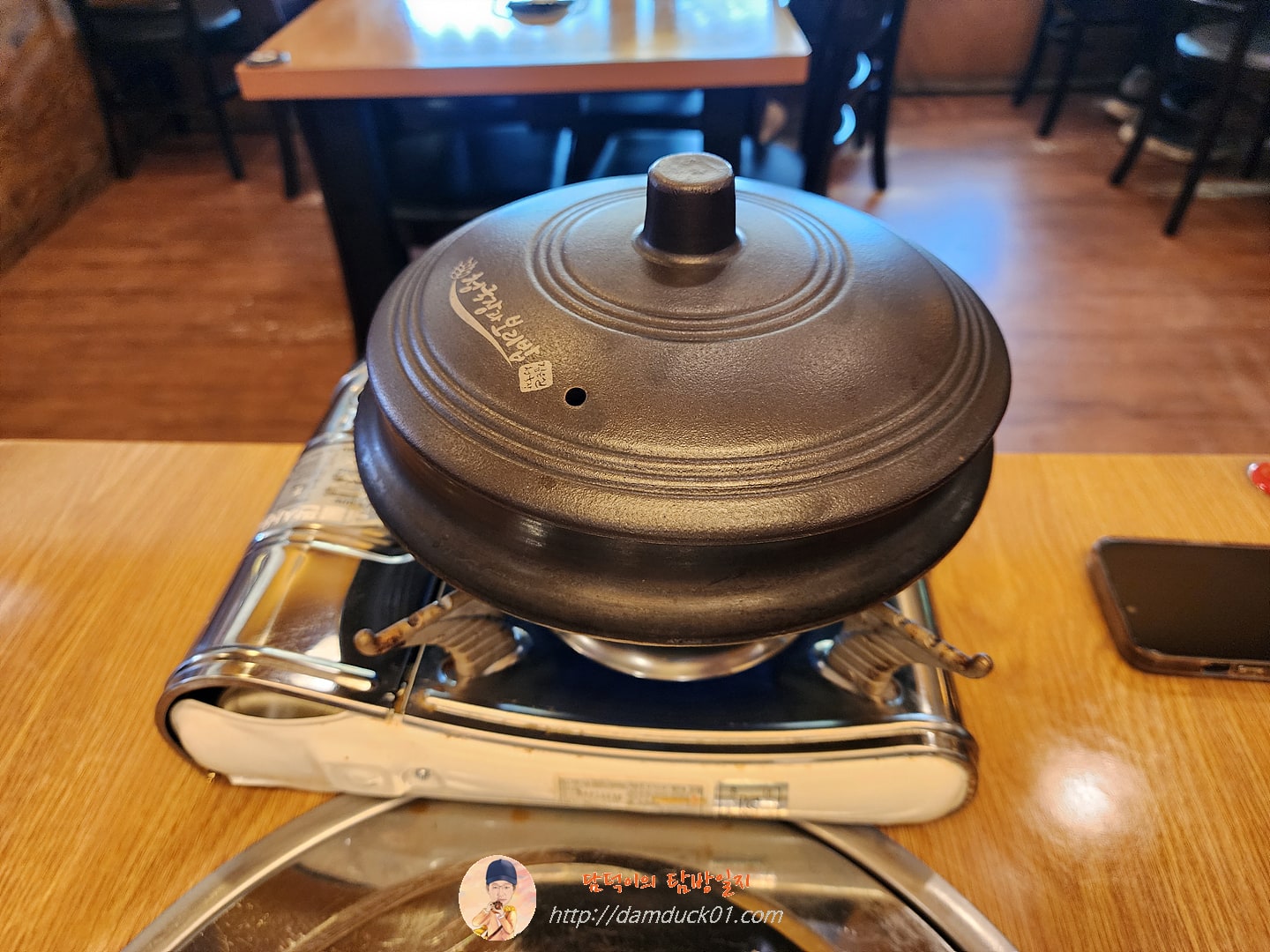 우리는 자연채 쌈정식 둘, 수육 정식 둘 이렇게 주문을 했고 주문과 함께 가장 먼저 뚝배기에 담긴 청국장이 입장합니다. 이 청국장은 모자라면 요청해서 더 먹을 수 있어요. 물론 추가 가격은 무료!!!