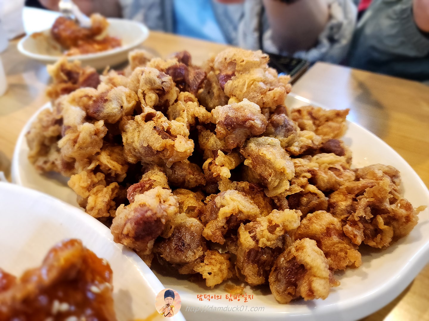 혹시 모자랄까 봐 시킨 모래집 튀김인데요. 예전에는 닭똥집 튀김이라고 많이 불렀죠. 간혹 이걸 너무 튀겨서 식감이 딱딱한 곳도 있는데 대봉통닭의 모래집 튀김은 겉바속촉으로 맛있게 잘 튀긴 모래집 튀김입니다. 제 취향이었습니다. 그런데 예전에는 통닭 하나 시키면 모래집 튀김은 통닭 위에 서비스로 얹어주고는 했었는데 대봉통닭은 안 그런 건지 아니면 요즘은 다 그렇게는 안 주는 건지 모르겠네요.