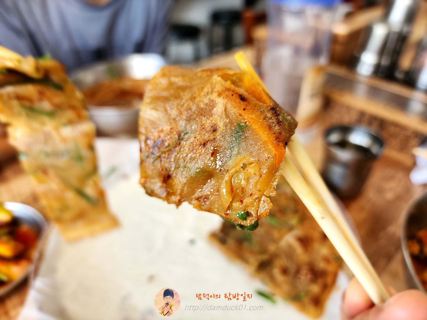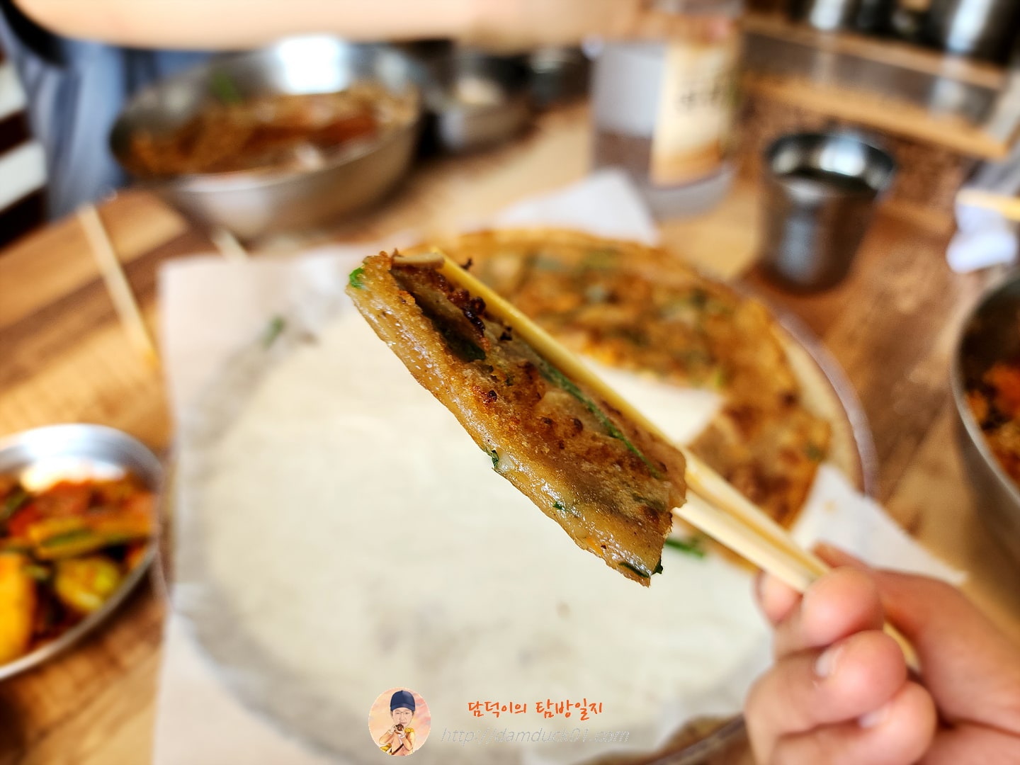 도토리묵밥도 맛있지만 저랑 우리 아들들이 더 좋아하는 메뉴는 바로 도토리 전인데요. 전 도토리 전을 여기 다람쥐할머니에서 처음 먹어봤는데 원래도 전을 좋아하지만 와~ 여기 도토리 전은 정말 최고입니다. 한 판으로는 절대 만족 못해서 적어도 두 판, 많으면 세 판, 아내가 허락만 해 주면 네 판도 먹을 수 있을 거 같은 도토리 전인데요. 이게 정말 보기에는 별 거 없어 보이는데 먹으면 먹을수록 끌리는 맛이라서요. 배가 불러도 '한 조각만 더 먹으면 좋겠다' 싶은 아쉬움이 뿜뿜 하는 도토리 전이랍니다.