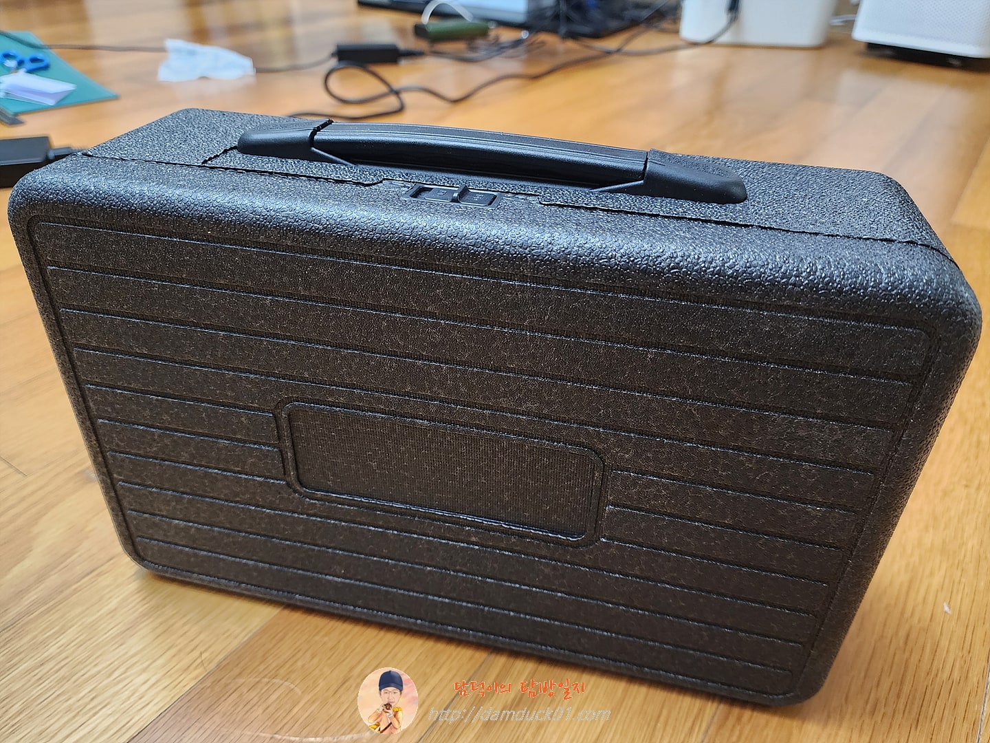 건케이스가 함께 제공되는 제품인데 멀리서 보면 제법 그럴듯합니다. 물론 가까이서 보면 싼티가 나는 스티로폼으로 찍어낸 가방인데요. 그래도 손잡이도 있고 잠금장치까지 구현되어 있어서 눈높이를 낮추면 그럴듯한 건케이스랍니다.