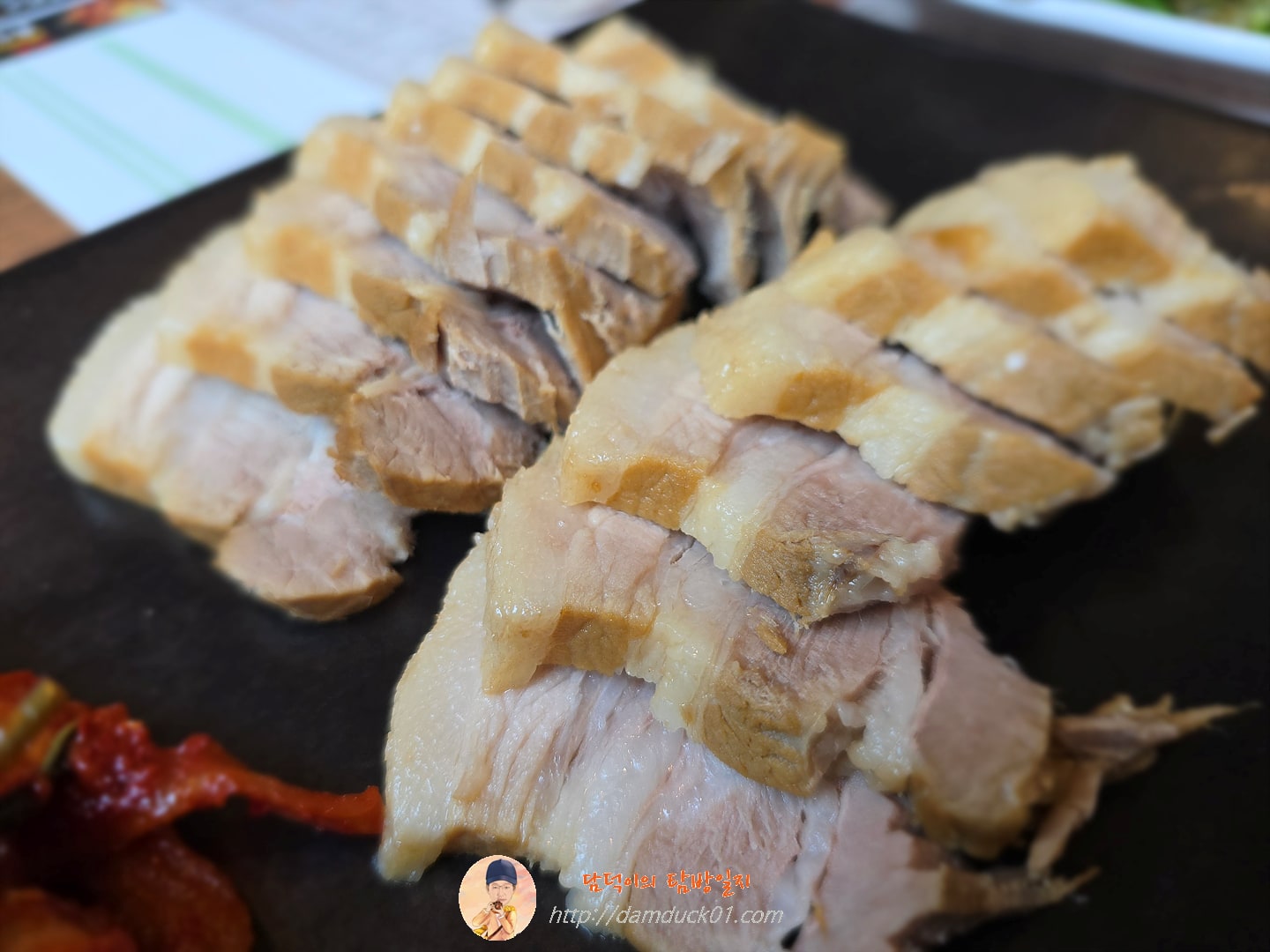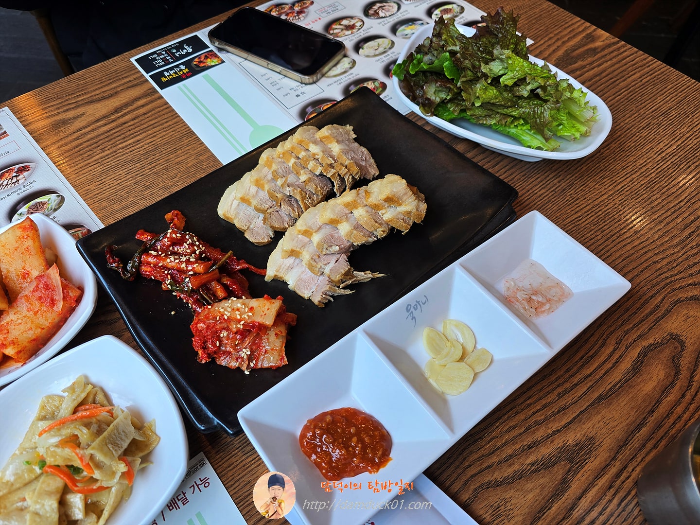 먼저 나온 건 보쌈 한판인데요. 1인 단품 가격이 15,000원인 보쌈 한 판 메뉴인데 이렇게 육개장 세트로 주문하면 양이 많이 적을 거라고 생각을 했는데 그냥 보쌈 한 판이 다 나오는 거 같네요. 무김치와 배추김치도 적당하게 나왔는데 보쌈 전문점의 배추김치 느낌은 아니지만 그래도 먹을 만했어요. 보쌈 고기는 처음에 봤을 때는 음~  뭔가 좀 퍽퍽해 보인다는 느낌이 있었는데 먹어보니까 적당한 온기를 가지고 있고 부드러워서 괜찮았습니다.