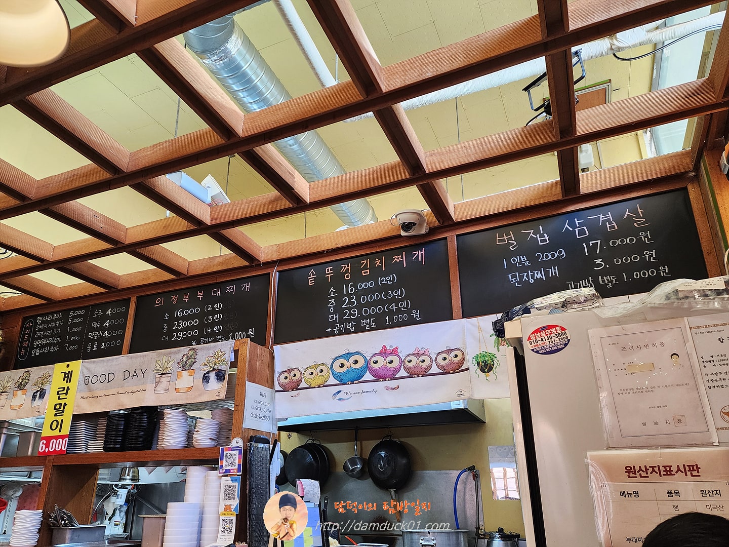 서가네 의정부 부대찌개는 작년 7월이 가장 최근 방문이었는데 그때도 외관 사진을 안 찍었는데 어제도 날씨가 추우니까 빨리 들어갈 생각에 사진을 못 찍었어요. 그래서 제가 가지고 있는 가장 사진을 찾아봤는데 외관은 재작년 그러니까 2023년 12월 사진이 최신이네요. 외부 사진은 오래됐지만 실내 메뉴판 사진은 어제 찍었습니다. 😅