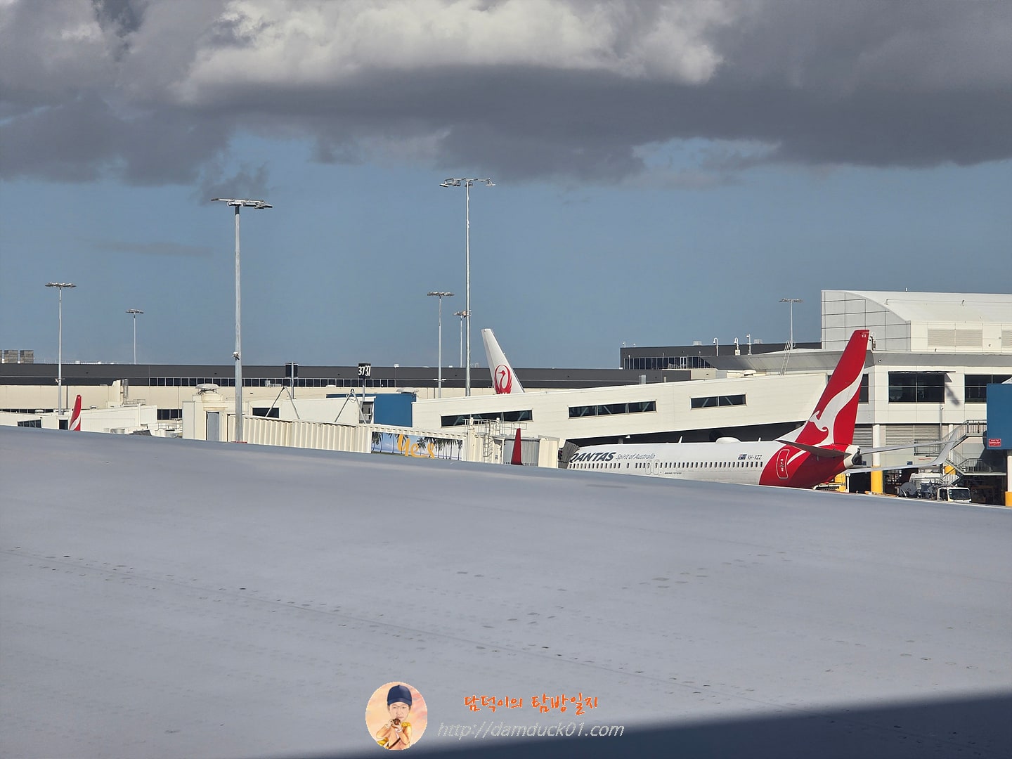 기내식을 먹는 사이 날이 밝아서 깜깜한 어둠만 보이던 창 밖 풍경이 빛과 함께 구름 위에 떠 있는 모습을 보여줍니다. 호주까지 가는 비행 내내 날씨가 안 좋았던 건지 비행기가 자주 흔들려서 쉽지 않은 비행이긴 했습니다.