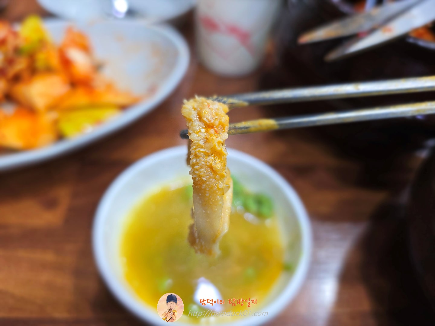 썰은 고추도 작은 그릇에 따로 담겨 나오는데 아내와 아이들은 오이 고추만 먹기 때문에 이 고추는 전부 제 겁니다. 내장을 조금 찍어 먹다가 고추를 전부 넣어줬습니다. 그런데 양이 좀 많았던 걸까요? 국물을 한 모금 떠먹어 보니 고추향이 강하게 느껴집니다. 다음에는 조금만 덜어내서 넣어야겠습니다. 😅