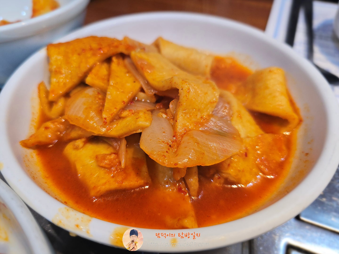 여기도 손님이 많네요. 신발을 벗도 들어가야 하는 방에 자리를 잡았습니다. 주문은 섞어서 4개를 했는데 신황산벌에서 말하는 섞어서는 동태 + 알탕을 이야기해요. 가격은 작년 10월에서 오르지 않은 15,000원입니다. 반찬은 나눠서 나오는데 특이하게 여기는 반찬으로 떡볶이가 나오거든요. 그런데 어제는 떡이 떨어졌던 걸까요? 떡볶이가 아닌 어묵볶이가 나옵니다. 그런데 솔직히 여기 떡볶이가 맛이 있는 편은 아니에요.