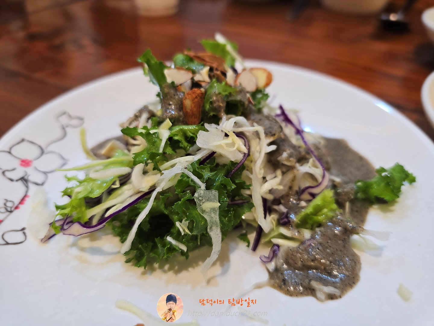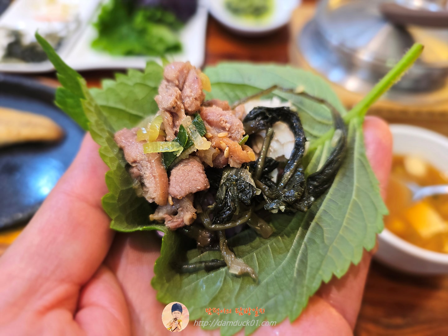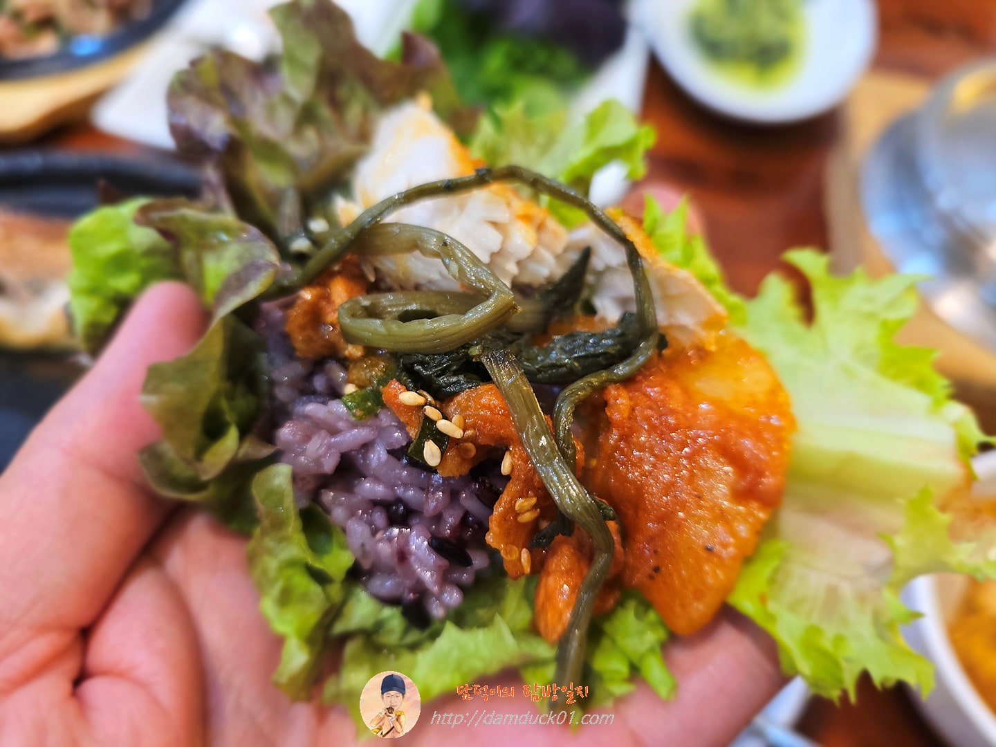 하지만 위에서 얘기한 대로 여기 정말 괜찮거든요. 신선하고 다양한 쌈채소가 무제한 리필이 되고 뜨끈한 숭늉까지 만들어 먹을 수 있는 솥밥이 나오는 데다가 된장찌개, 제육볶음, 오리불고기 거기에 고등어구이까지 함께 맛있게 먹을 수 있는 쌈밥집이랍니다. 그러니까 방문하시게 된다면 혹시 단체 예약 여부만 확인해 보시고 단체예약이 있다면 그날은 피하시는 게 불편 없이 높은 만족도로 맛있는 식사를 할 수 있을 거 같으니까 꼭 확인해 보시라고 해야겠네요.
