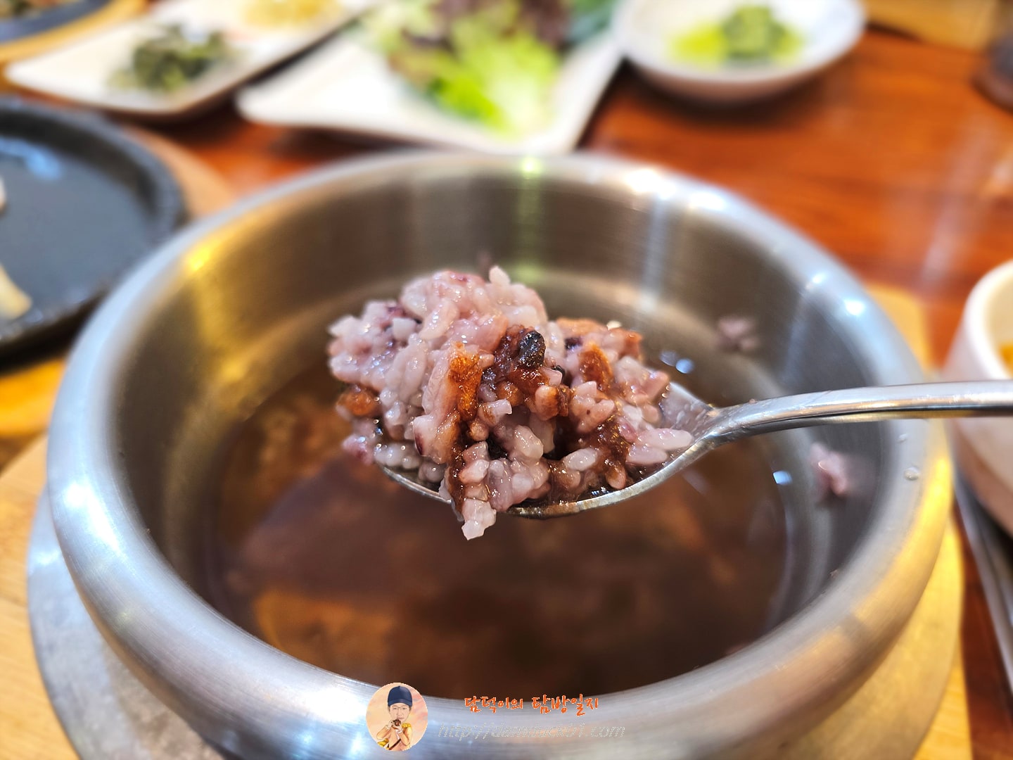 밥까지 전부 다 나와서 본격적인 식사가 가능해진 건 주문하고 나서 거의 40분이 지났을 때였답니다. 밥은 솥밥으로 나오기 때문에 누룽지까지 해 먹을 수 있어요. 여기가 절대 구성이나 맛이 부족한 곳이 아닌데 여길 함께 왔던 직원들은 이날만 어쩔 수 없었다고 이해할 수 있겠지만 처음 찾은 직원들은 실망했을 수 있을 거 같습니다.