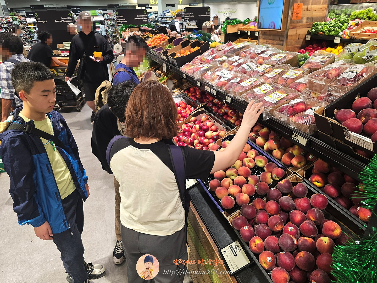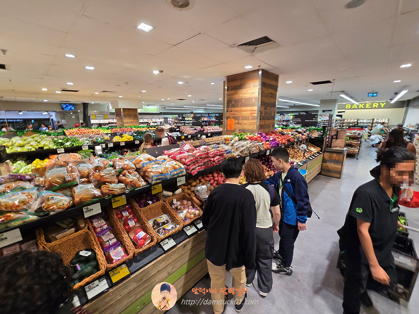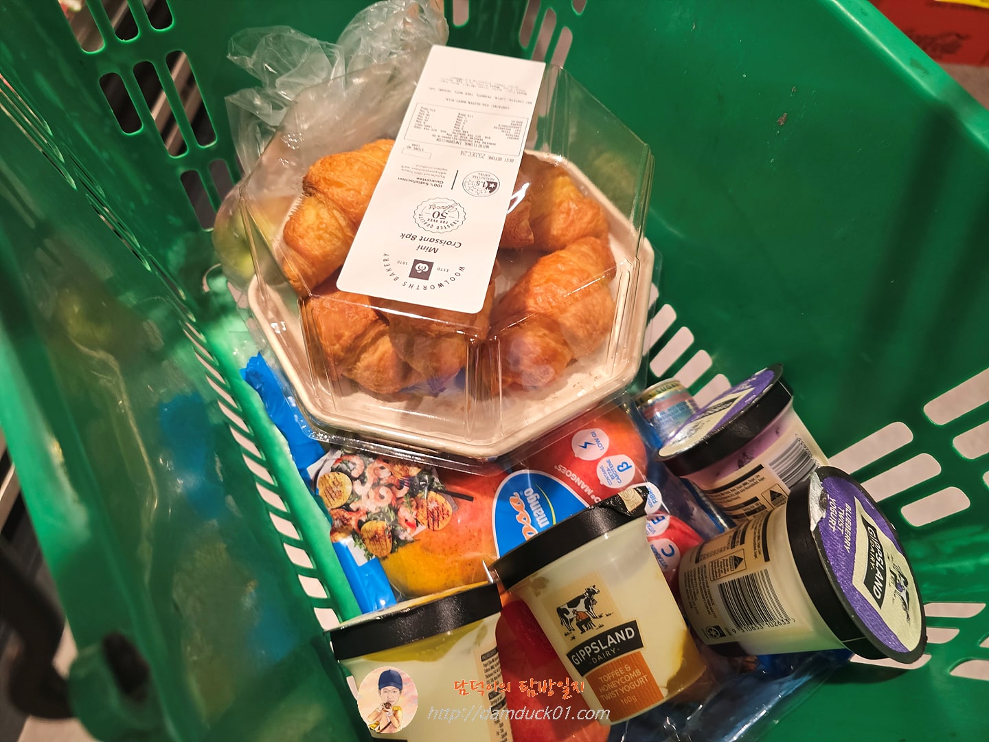 퀸 빅토리아 빌딩은 나중에 들르기로 하고 길을 건너 장을 보러 갑니다. 숙소인 '메리톤 스위트 켄트 스트리트, 시드니'는 취사가 가능한 호텔입니다. 저녁은 숙소에서 간단하게 해 먹기 위해서 장을 봐야 합니다. 호주를 여행하는 한국인들에게 유명한 마트가 퀸 빅토리아 빌딩 대각선에 있습니다. Woolworths Town Hall 울월스 마트입니다. 호주에서 콜스와 함께 가장 유명한 마트 브랜드라고 합니다. 1층에는 음료와 생수, 과자 등 가공식품들이 있고 지하로 내려가면 신선 식품이 있습니다. 요거트와 과일, 빵, 음료 그리고 생수 그리고 연어초밥도 구매했습니다. 장을 보고 숙소에 가서 한국에서 가져온 오징어짬뽕 컵라면과 볶음 김치, 그리고 연어초밥으로 간단하게 저녁을 해결합니다.