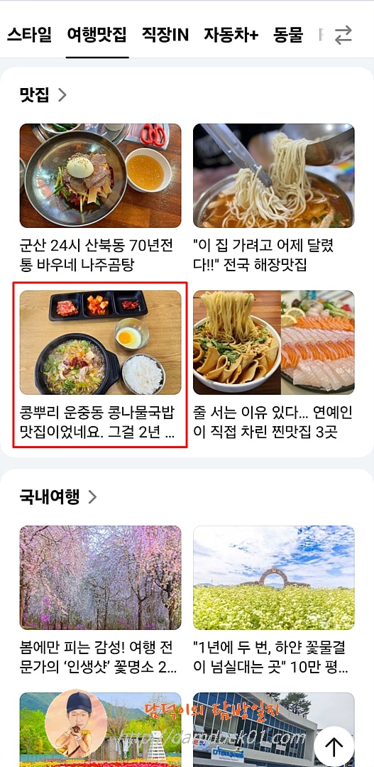 담덕이의 탐방일지 98번째 다음 메인 등록된 글은 2025년 4월 28일 발행한 '콩뿌리 운중동 콩나물국밥 맛집이었네요. 그걸 2년 만에 알았습니다. by 직장인 점심 메뉴 탐방' 글입니다.