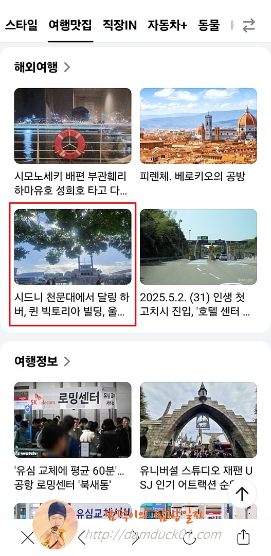 5월 1주 차 마지막 다음 메인 등록 글은 5월 3일 토요일에 등록된 '시드니 천문대에서 달링 하버, 퀸 빅토리아 빌딩, 울월스 마트를 지나 다시 숙소로. by 2024년 호주 여행' 글입니다.