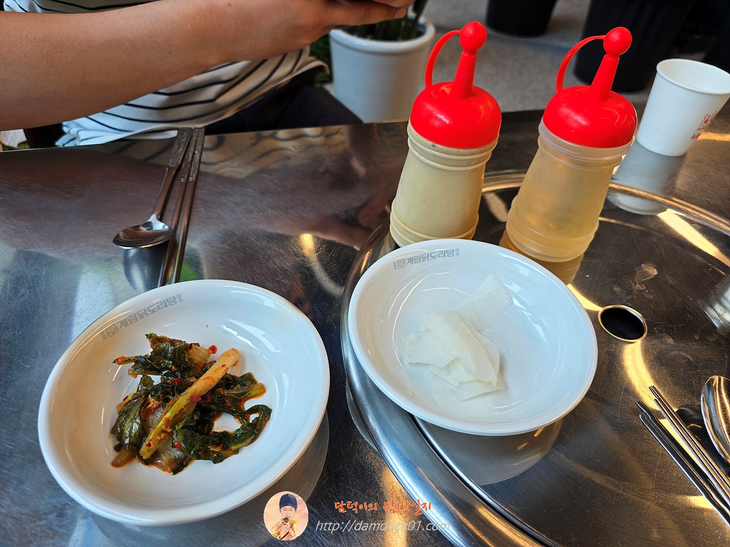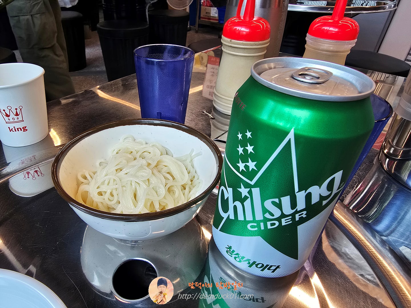 종로계림닭도리탕의 초계국수가 나왔습니다. 반찬으로는 열무김치와 냉면 무 두 가지가 나오고 식초와 겨자는 취향에 따라 넣어 먹으라고 따로 가져다주셨습니다. 그리고 국수 부족하면 더 먹으라면서 국수도 따로 챙겨주시고 새로 나온 메뉴 반응을 좀 보고 있다면서 리뷰 써 주면 음료를 준다고 하셔서 전 사이다도 받았습니다. 어차피 전 직장인 점심 메뉴 탐방 때문에 이렇게 포스팅할 거였으니까요. 😁