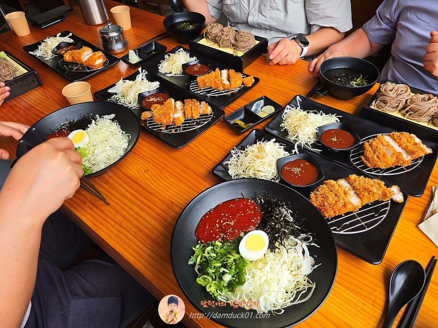 테이블 오더로 주문과 결제는 빠르게 진행됐습니다. 저랑 고정 탐방원은 지난번에 판메밀과 동가스 구성의 삼동정식을 먹었기 때문에 새로운 메뉴로 비빔소바와 돈가스 구성인 비빔소바정식으로 주문했고 다른 세 명은 삼동정식으로 주문했어요. 삼동소바정식의 가격은 16,000원, 비빔소바정식 가격은 17,000원입니다.