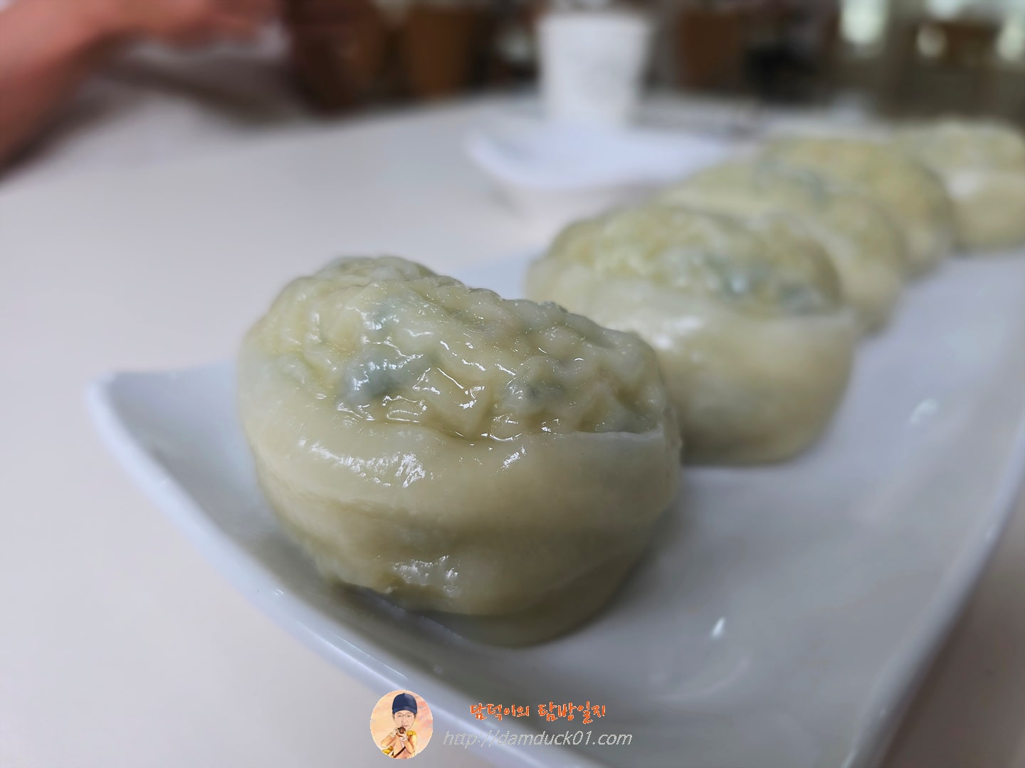 콩국수를 먹기 전 고기만두가 먼저 나왔는데 아~ 물론 고기만두는 따로 주문을 한 거예요. 고기, 김치, 섞어서 3 종류가 있는데 만두 5개 가격이 9천 원입니다. 크기는 적당하고 안은 꽉 찬 제법 괜찮은 만두를 먹을 수 있습니다.