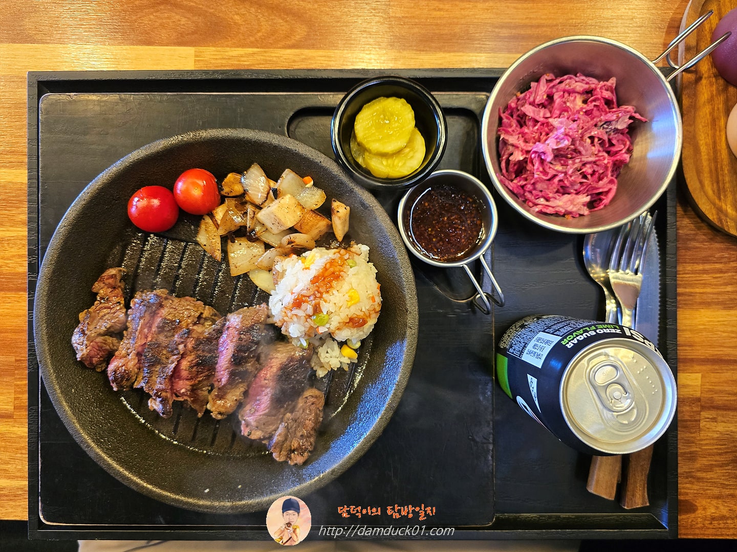 감자튀김 대신 코울슬로와 함께 즐겨보세요. 피크버거&스테이크의 피크 시그니처 스테이크 세트. by 직장인 점심 메뉴 탐방