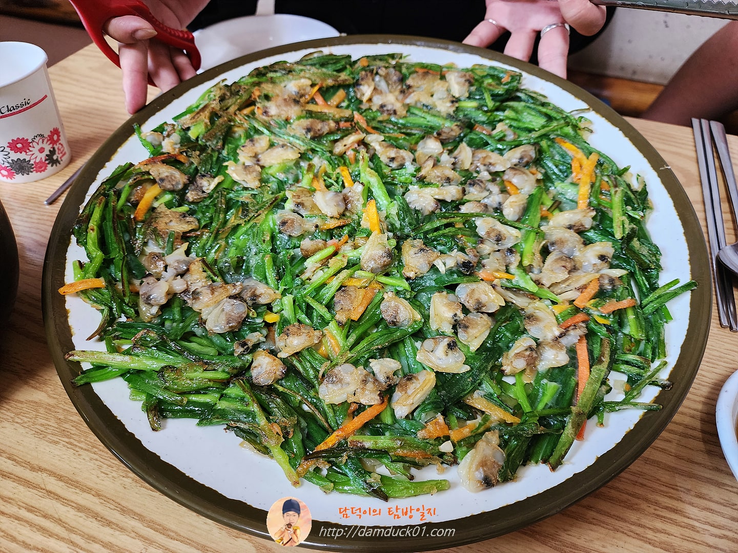 콩국수를 주문하고 난 후 음식이 나오기 전에 바로 추가한 두 개의 메뉴가 더 있었는데 바로 바지락부추전과 메밀전병이었습니다. 바지락부추전은 이전에도 먹었었는데 커다란 크기에 가득 담긴 바지락으로 비주얼도 맛도 훌륭한 바지락부추전이었어요. 단지 제 기준에서는 바삭함이 조금 부족하다고 느꼈는데 조금 더 바싹 구웠으면 좋겠다 싶었고 전라도바지락팥칼국수에서는 처음 주문한 메밀전명 이거 맛있습니다. 바지락부추전에서 아쉬웠던 바삭함이 메밀전병에서는 제대로였고 속도 알차게 채워져 있는데 맛있었어요.