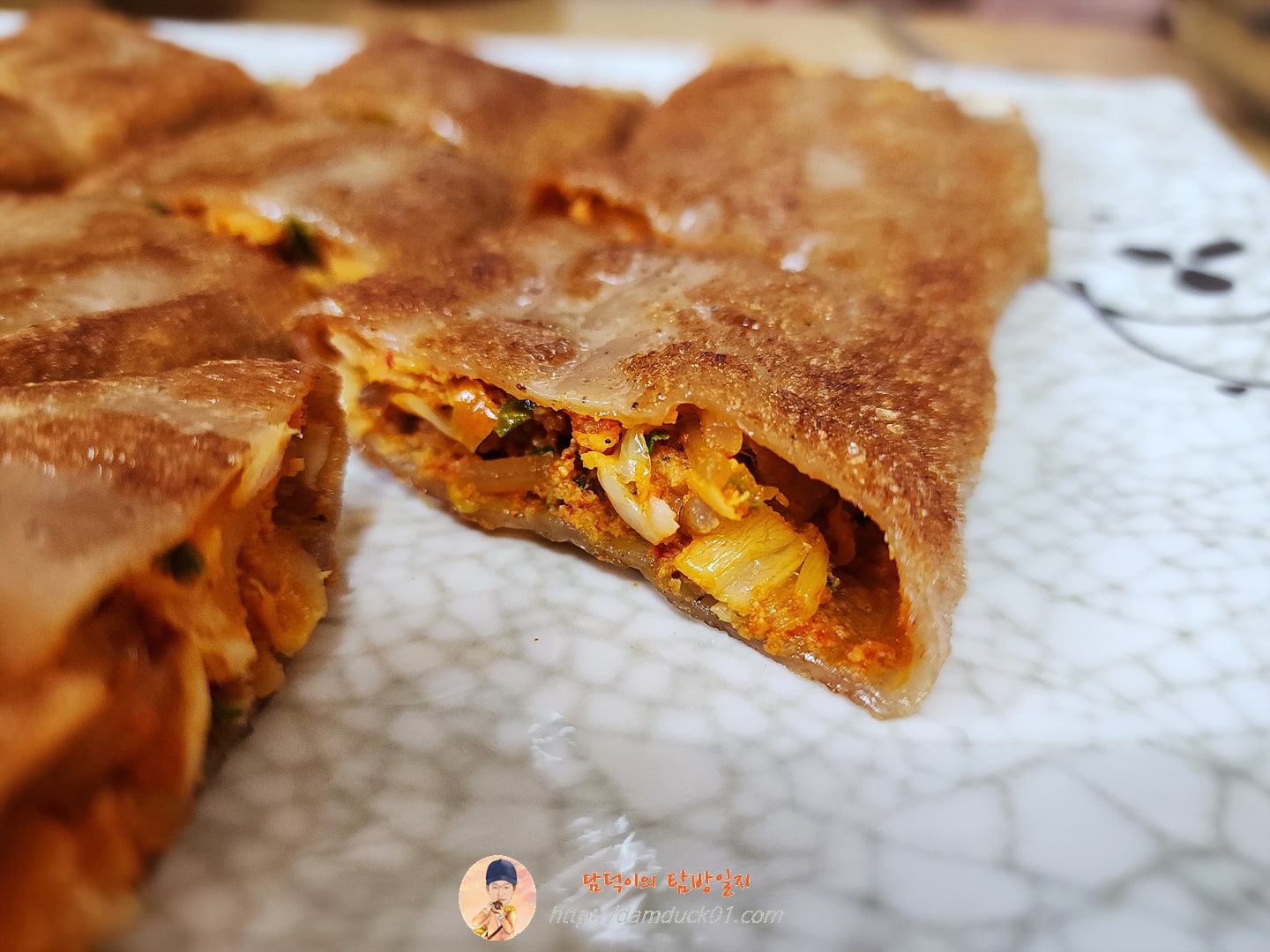 콩국수를 주문하고 난 후 음식이 나오기 전에 바로 추가한 두 개의 메뉴가 더 있었는데 바로 바지락부추전과 메밀전병이었습니다. 바지락부추전은 이전에도 먹었었는데 커다란 크기에 가득 담긴 바지락으로 비주얼도 맛도 훌륭한 바지락부추전이었어요. 단지 제 기준에서는 바삭함이 조금 부족하다고 느꼈는데 조금 더 바싹 구웠으면 좋겠다 싶었고 전라도바지락팥칼국수에서는 처음 주문한 메밀전명 이거 맛있습니다. 바지락부추전에서 아쉬웠던 바삭함이 메밀전병에서는 제대로였고 속도 알차게 채워져 있는데 맛있었어요.