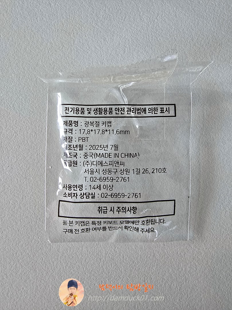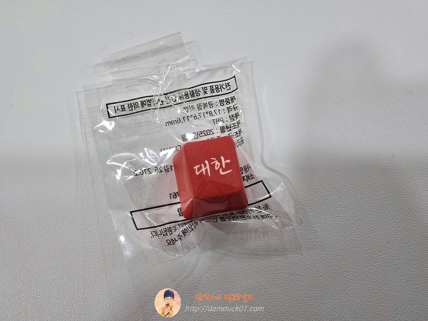그리고 일부러 광복절 기념 도시락을 구매한 이유는 바로 이 도시락에 대한, 독립, 만세, 태극기로 디자인된 키보드 '키캡' 4종이 20만 개 한정으로 제공되기 때문인데 이게 정말 랜덤이면 아예 시도를 안 할 텐데 다행히 도시락을 뜯지 않아도 어떤 키캡이 있는지 확인이 가능하게 디자인되어 있어서 구매하러 간 거지만 하나밖에 없었기 때문에 선택을 할 수가 없었고 그래서 가져온 키캡은 '대한' 키캡입니다.
