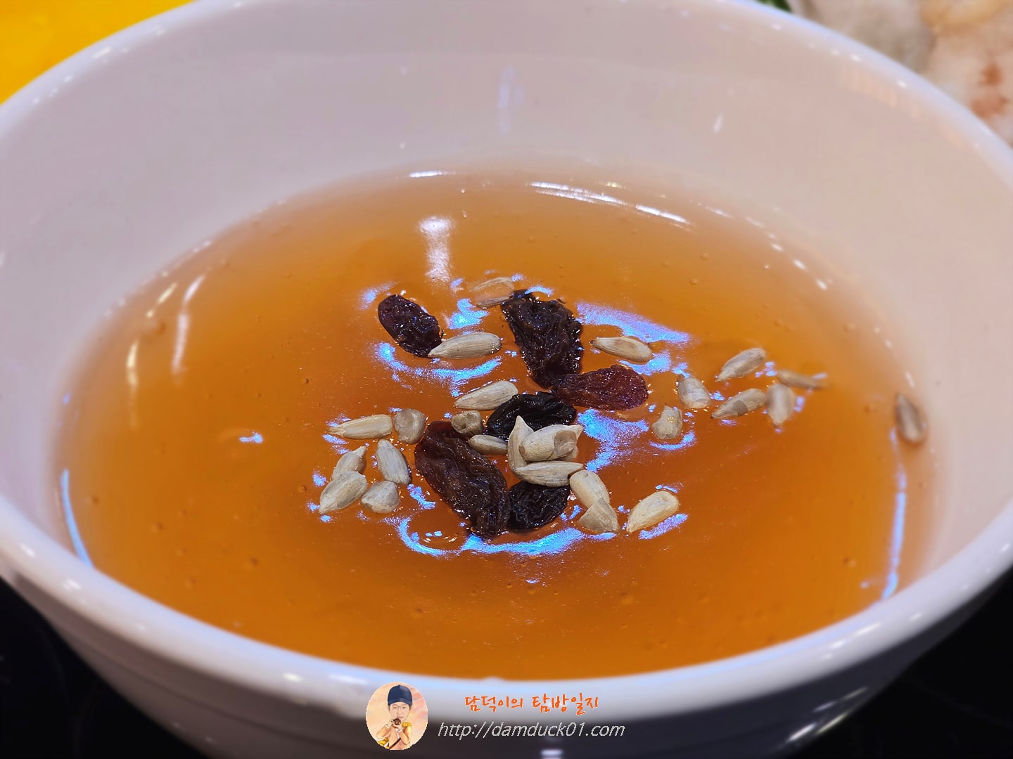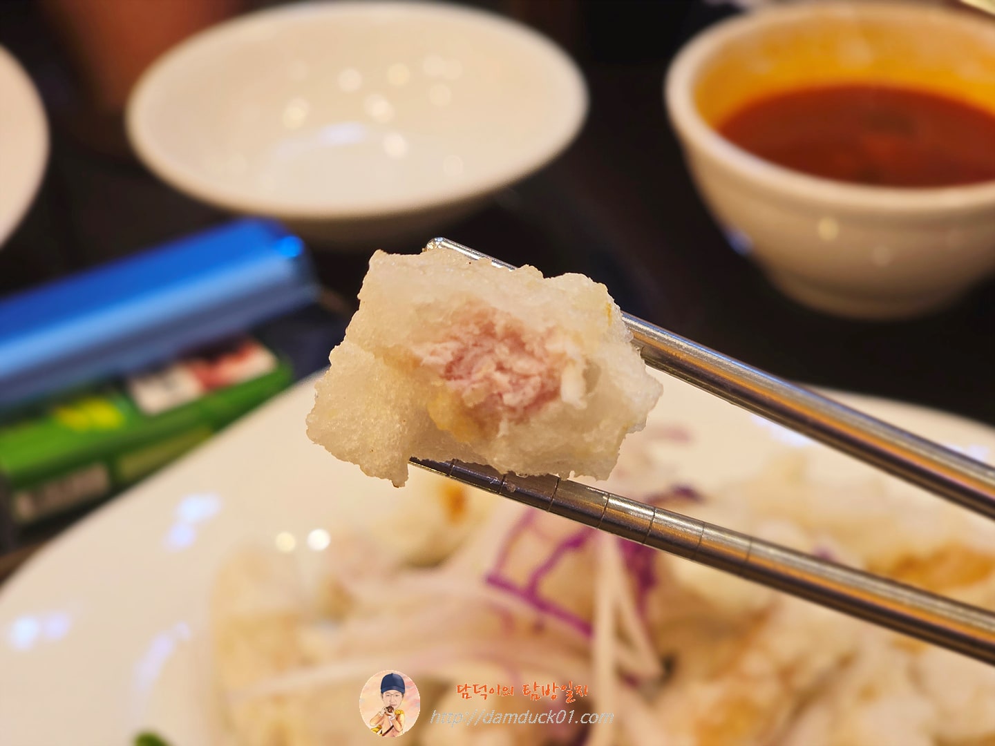 그렇게 해물짬뽕을 먹고 있을 때 나온 청계산수타의 탕수육입니다. 청계산수타의 탕수육 소스가 독특하죠? 다른 채소는 보이지 않고 건포도와 견과류가 소스 중앙에 살포시 얹어 있습니다. 찍먹 스타일의 탕수육 고기는 튀김옷이 정말 하얗고 쫄깃한 식감을 가지고 있습니다. 그 안에 들어 있는 고기가 엄청 크다는 아니지만 그래도 이 정도면 만족할 정도로 알차게 들어 있다고 생각합니다. 3명이서 각자 식사 메뉴랑 탕수육까지 먹으니까 못 먹을 정도는 아니지만 조금 많은가? 싶을 정도로 배부르게 맛있게 잘 먹고 온 청계산수타에서의 점심 식사였습니다.