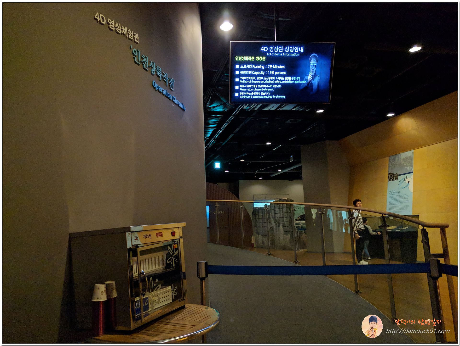 그리고 여기가 인천 상륙작전 4D체험실인데 여기서도 약 30여분을 기다려서 입장을 했는데 다행히 여기는 정해진 좌석에 착석을 해야 해서 대기순서대로 15명만 입장을 했는데 마치 게임처럼 인천 상륙작전을 하는 군인의 시점에서 배를 타고 진입을 하기도 하고 전투기를 몰고 가는 체험도 돼서 재미는 있는데 역시나 너무 짧은 상영시간(약 7분)이 아쉽긴 했어요. ^^