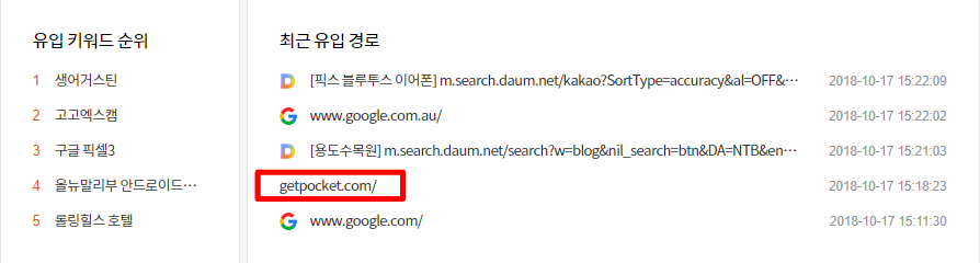 어제 오후에 최근 유입 경로 확인에 이상한 URL을 발견 "getpocket.com/"